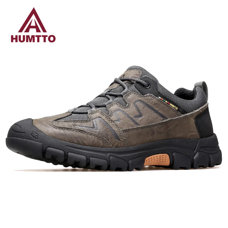 Спортивная походная обувь HUMTTO для мужчин, Водонепроницаемые кожаные мужские кроссовки, роскошные дизайнерские уличные безопасные кроссовки для скалолазания и треккинга