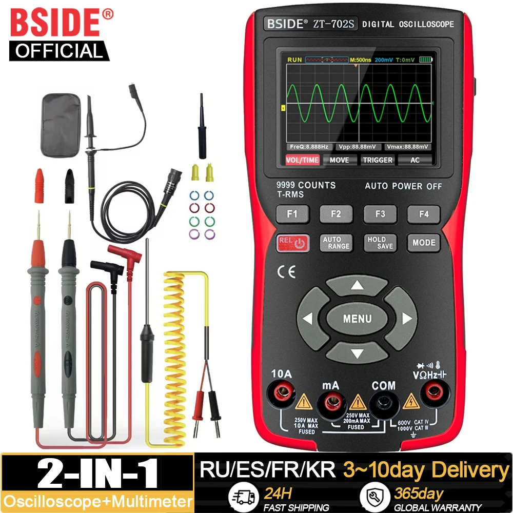 BSIDE ZT702S Professional Digital Multimeter Handheld Oscilloscope Electrician Tester Ammeter Voltmeter Current Cap Ohm Meter