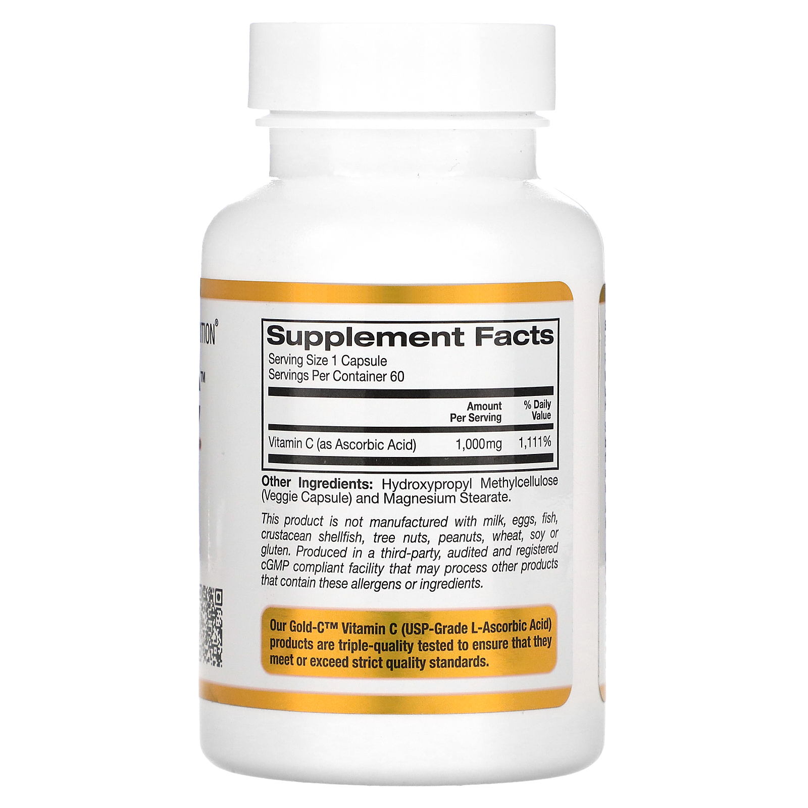 California Gold Nutrition, Gold C, USP Grade Vitamin C, 1,000 mg, 60 Veggie Capsules