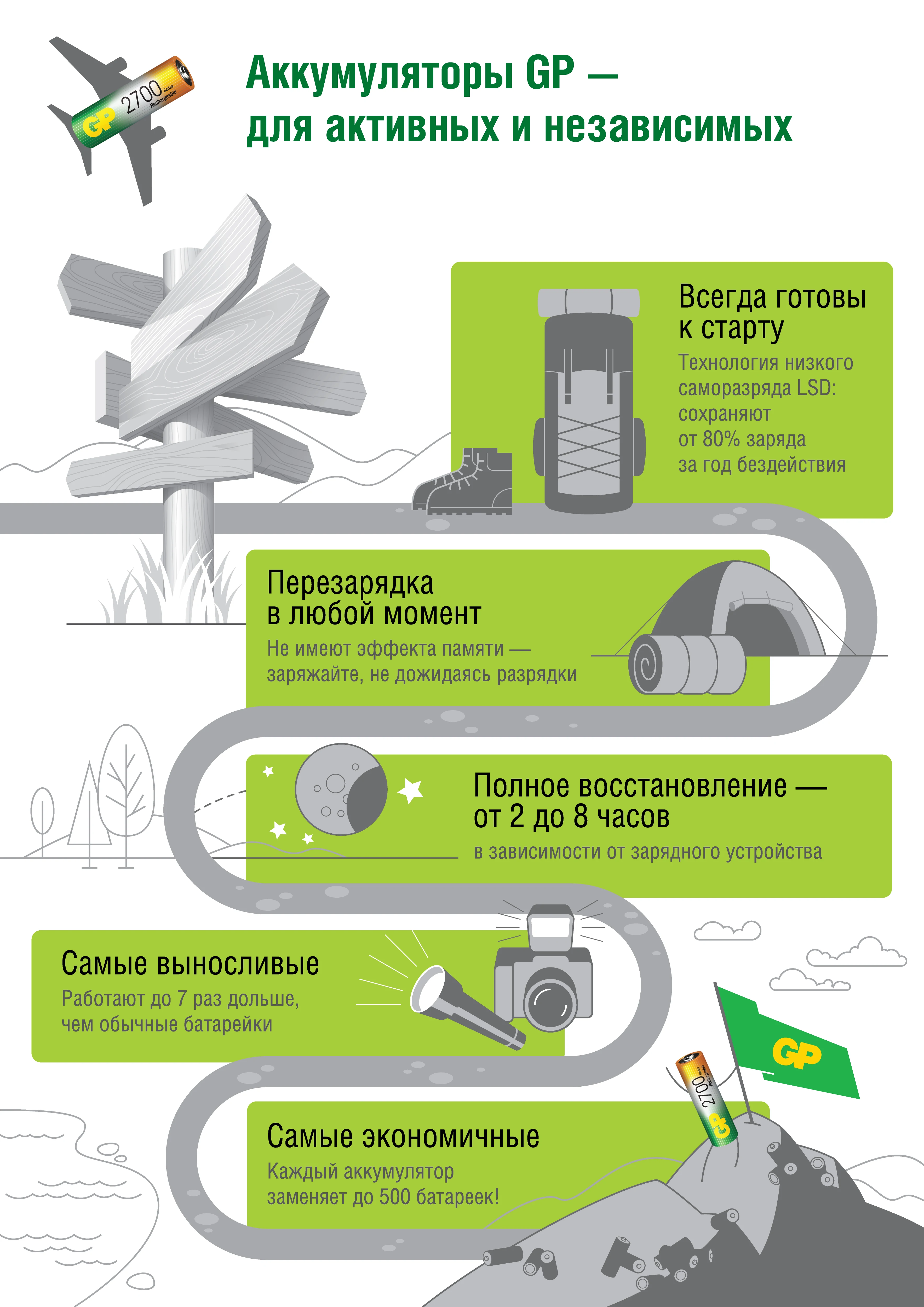 Аккумуляторы повышенной емкости GP можно заряжать не дожидаясь полного разряда, до 300 подзарядок, 2700 мАч (GP 270AAHC4/2-2CR6)