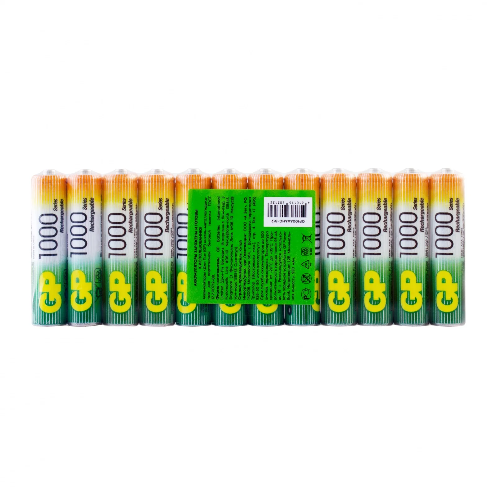Аккумуляторная батарейка GP ААА (HR03) 1000 мАч, 12 шт.