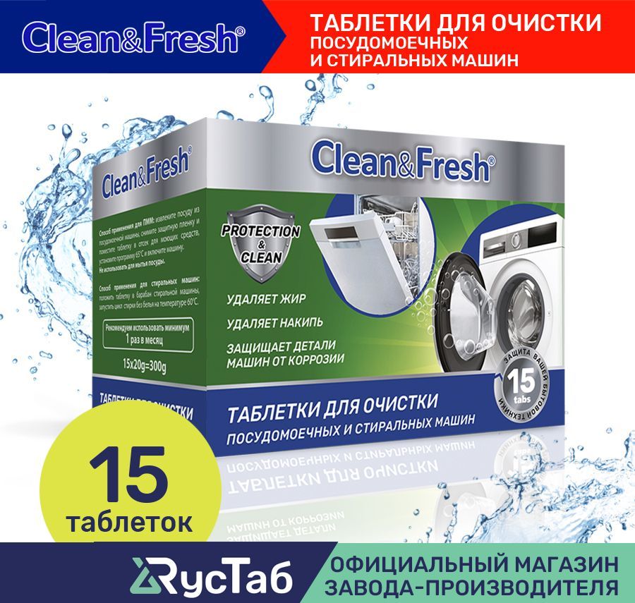 Очиститель для посудомоечных и стиральных машин Clean&Fresh 15 шт. / Таблетки для очистки посудомоечных машин купить в интернет-магазине OZON по низким ценам! Бесплатная доставка🚚 ✔Фото ✔Скидки ✔Рассрочка и настоящие отзывы (1159298188)
