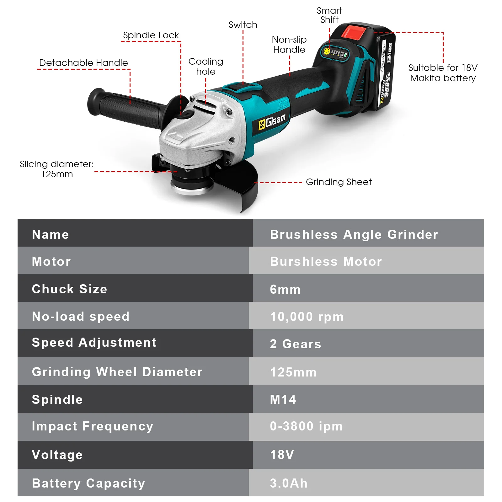 Buy 125mm M14 Brushless Angle Grinder Polishing Cutting Machine Cordless Electric Angle Grinder Power Tool for Makita 18V Battery at Aliexpress for . Find more , and products. Enjoy ✓Free Shipping Worldwide! ✓Limited Time Sale ✓Easy Return.