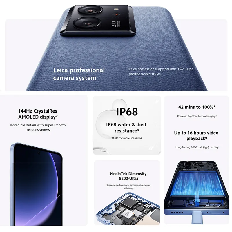 Глобальная версия Xiaomi 13T 50MP камера IP68 Водонепроницаемый 6,67 "144 Гц AMOLED дисплей 67 Вт charing MTK Dimensity 8200-Ultra BT 5,4