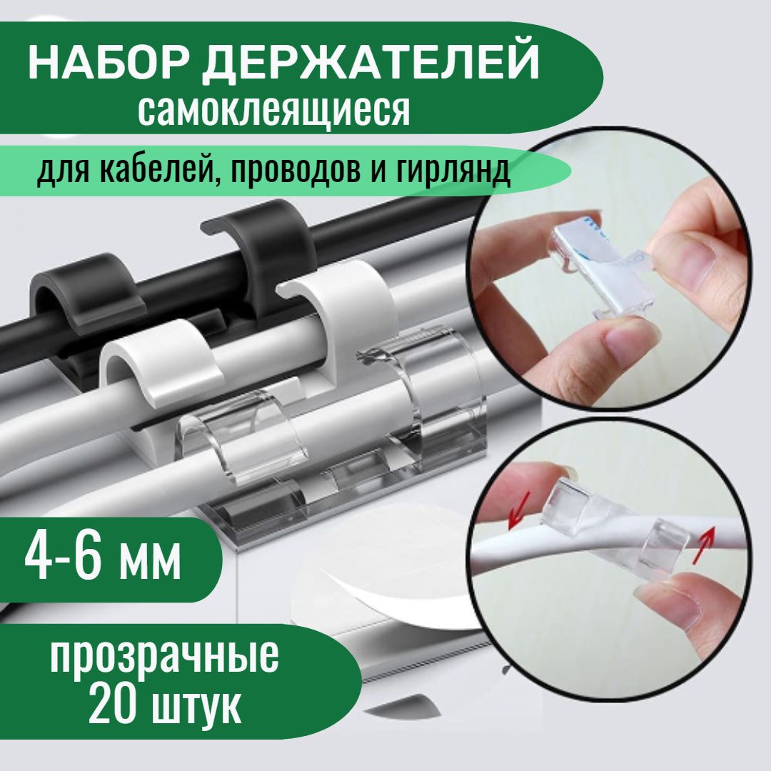 Держатель проводов 4-6 mm набор из 20 шт / органайзер для кабелей прозрачный / клипсы для гирлянд самоклеящиеся на прозрачном скотче купить в интернет-магазине OZON по низким ценам! Бесплатная доставка🚚 ✔Фото ✔Скидки ✔Рассрочка и настоящие отзывы (881903318)