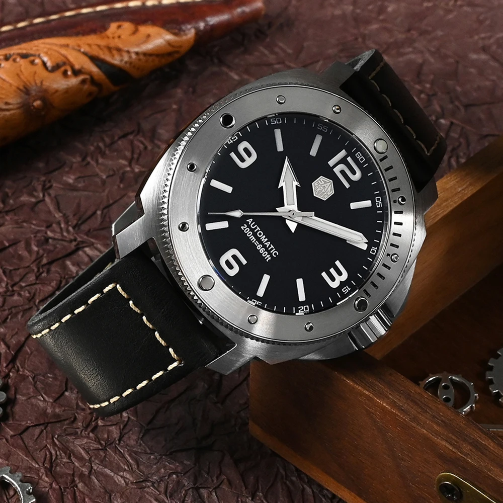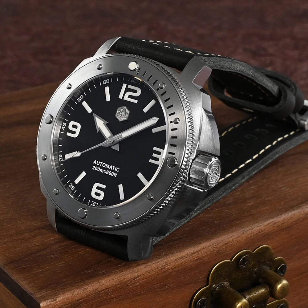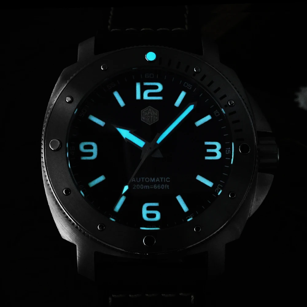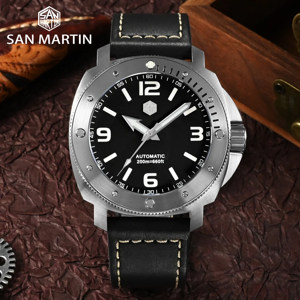 San Martin Men's Watch 43mm Classic Luxury Outdoor Military Style Miyota 8315 Automatic Mechanical Sapphire 20 ATM BGW9 Luminous