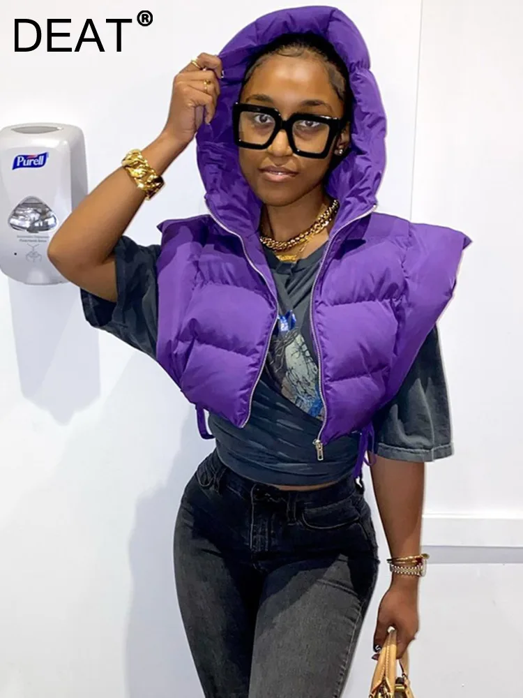 Buy DEAT Fashion Women's Cotton-padded Vest Hooded Sleeveless Lace-up Zipper Short Thick Warm Coats Winter 2023 New Tide 7AB1491 at Aliexpress for . Find more , and products. Enjoy ✓Free Shipping Worldwide! ✓Limited Time Sale ✓Easy Return.
