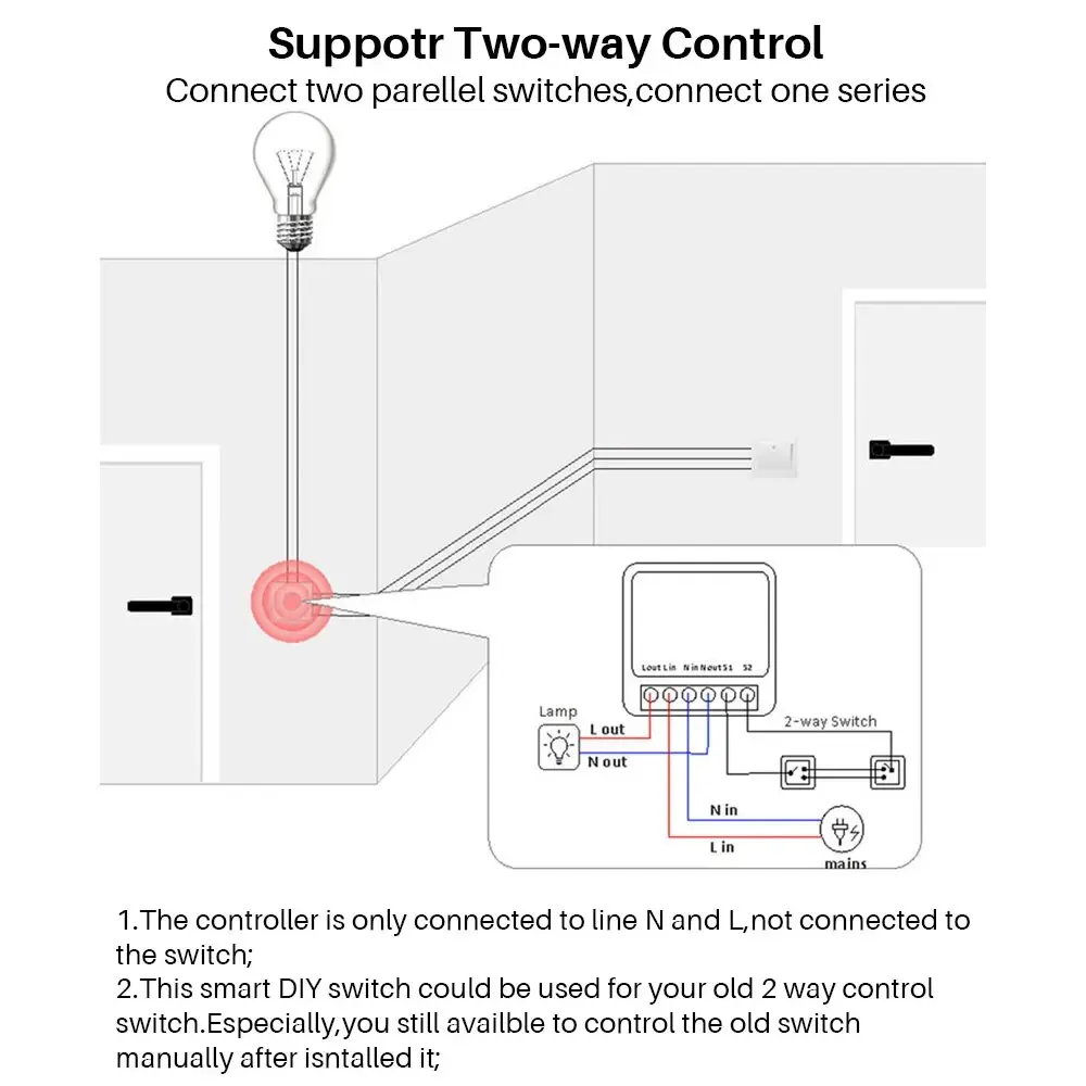 Смарт-выключатель EWelink, 16 А, Wi-Fi, 2-сторонний