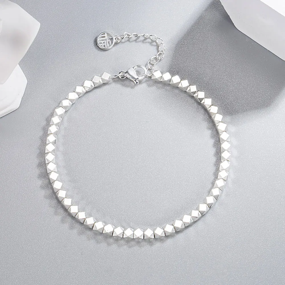 Женские браслеты из серебра 925 пробы, с блестящими неровными шариками