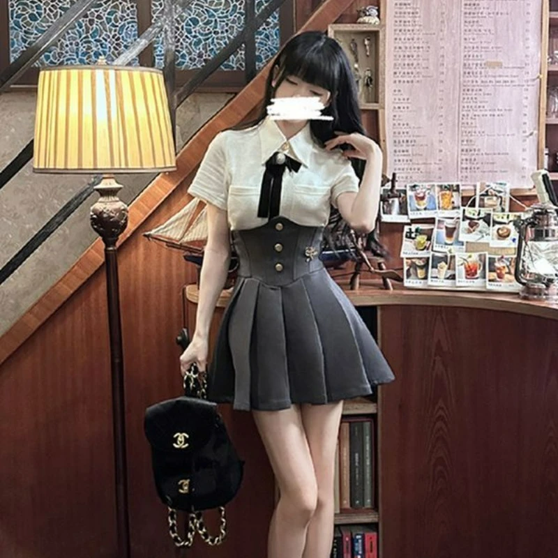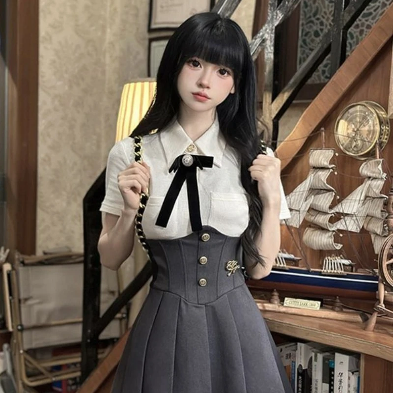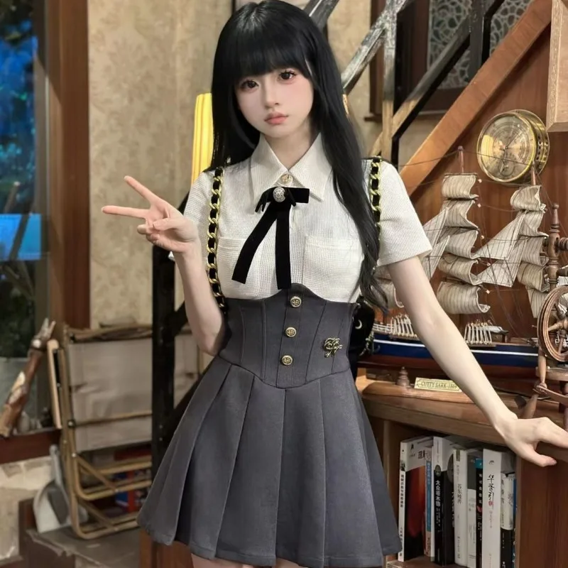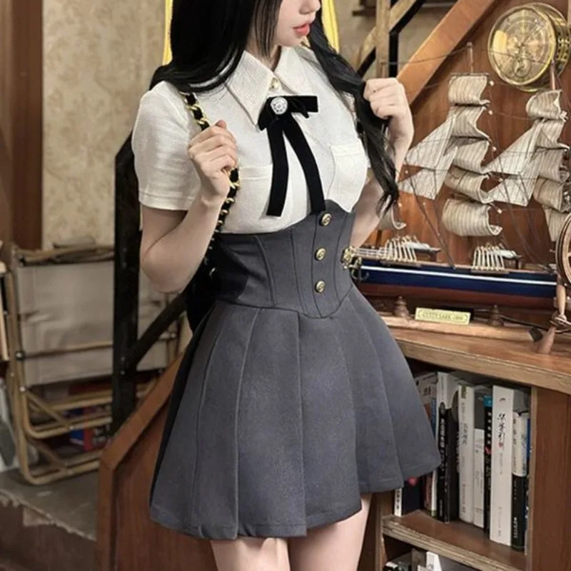 Conjunto de uniforme JK para mujer, falda de espina de pescado envuelta en la cintura, estilo Academy, puro deseo, verano, nuevo, 2 piezas - AliExpress