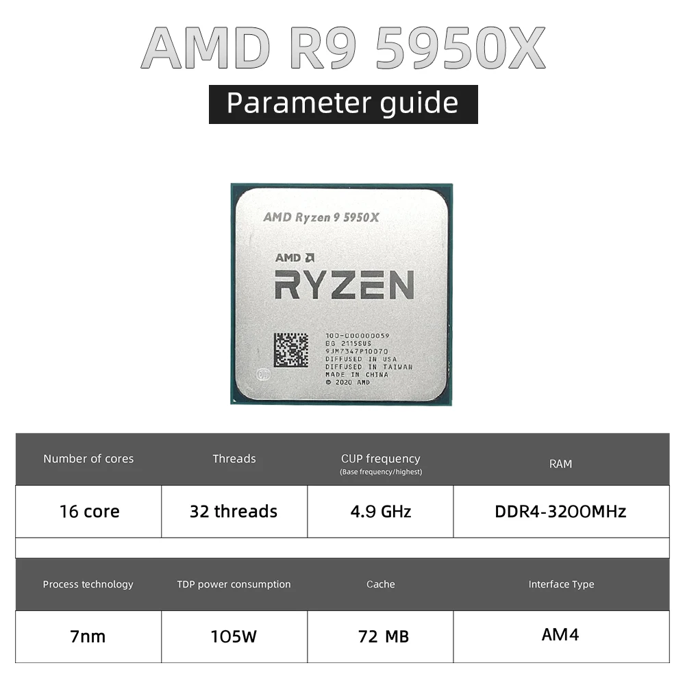 AMD Ryzen R9 5950x CPU 5950x desktop computer processor 3.4GHz 100-100000059 PCIe 4.0 AM4 105W TSMC 7nm FinFET 64MB No Fan - AliExpress