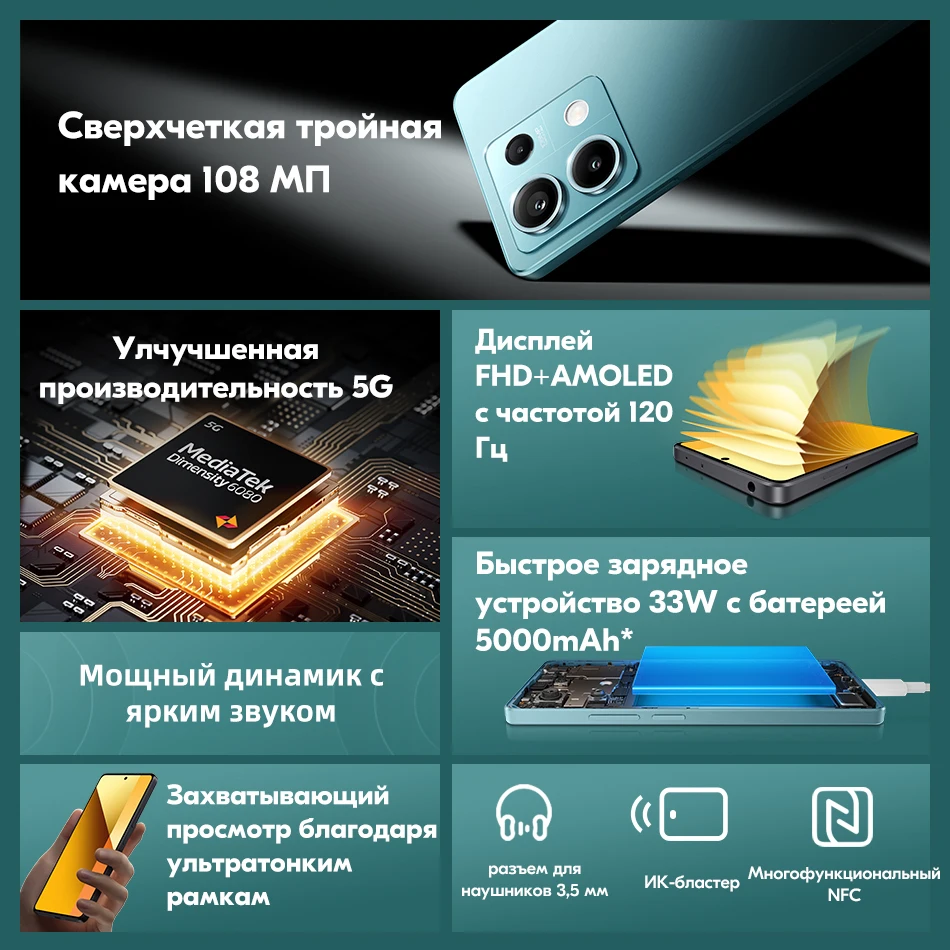 [World Premiere] Global Version Xiaomi Redmi Note 13 5G NFC 108MP Camera Smartphone 120Hz AMOLED 6nm Dimensity 6080 33W Charging - AliExpress