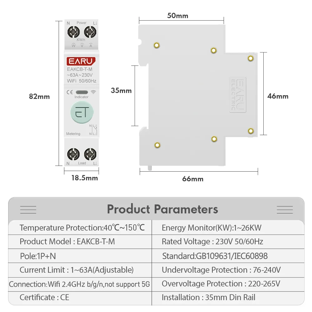 Buy Tuya WiFi Smart Circuit Breaker MCB 1P+N 63A Timer Power Energy kWh Voltage Current Meter Protector Voice Remote Control Switch at Aliexpress for . Find more , and products. Enjoy ✓Free Shipping Worldwide! ✓Limited Time Sale ✓Easy Return.