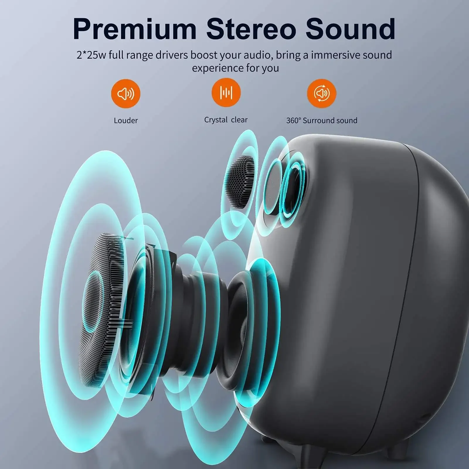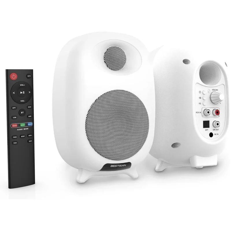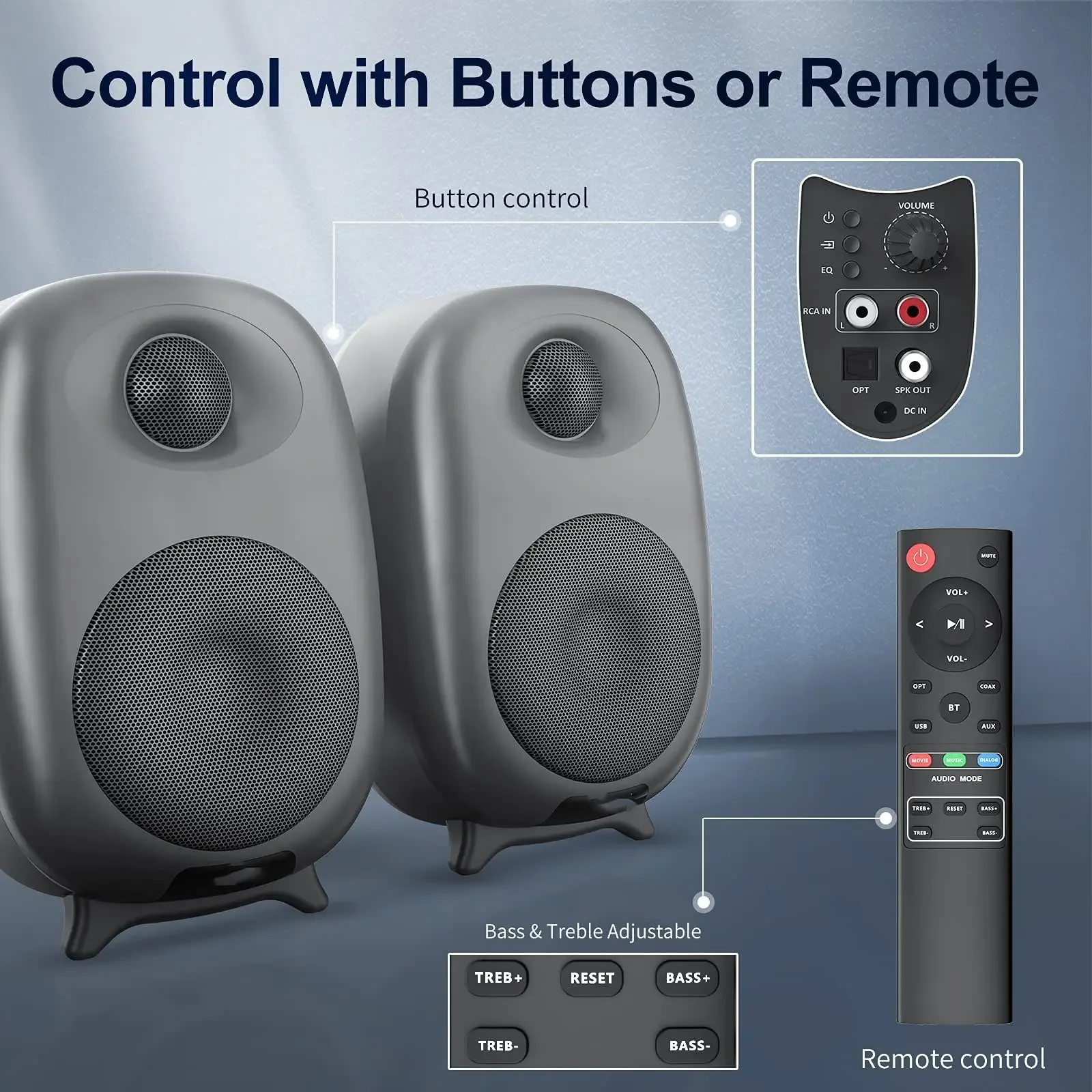 Колонки с подключением к книжной полке мощностью 50 Вт, поддержка Bluetooth и проводного оптического входа RCA, басы и высокие частоты, регулируемый глубокий бас, колонка для ПК