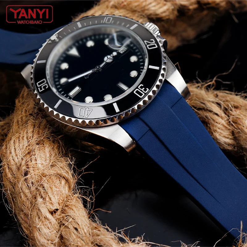 Силиконовый резиновый ремешок для часов 20 мм 21 мм для ремешка для часов rolex водонепроницаемый браслет для дайвинга защита от пыли браслеты оптом ремешок