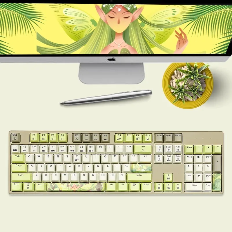 Механическая клавиатура Hyeku Gk707/gk715, тема Elf, белая Rgb подсветка Hotswap, настройка проводной клавиатуры, игровая клавиатура E-sport