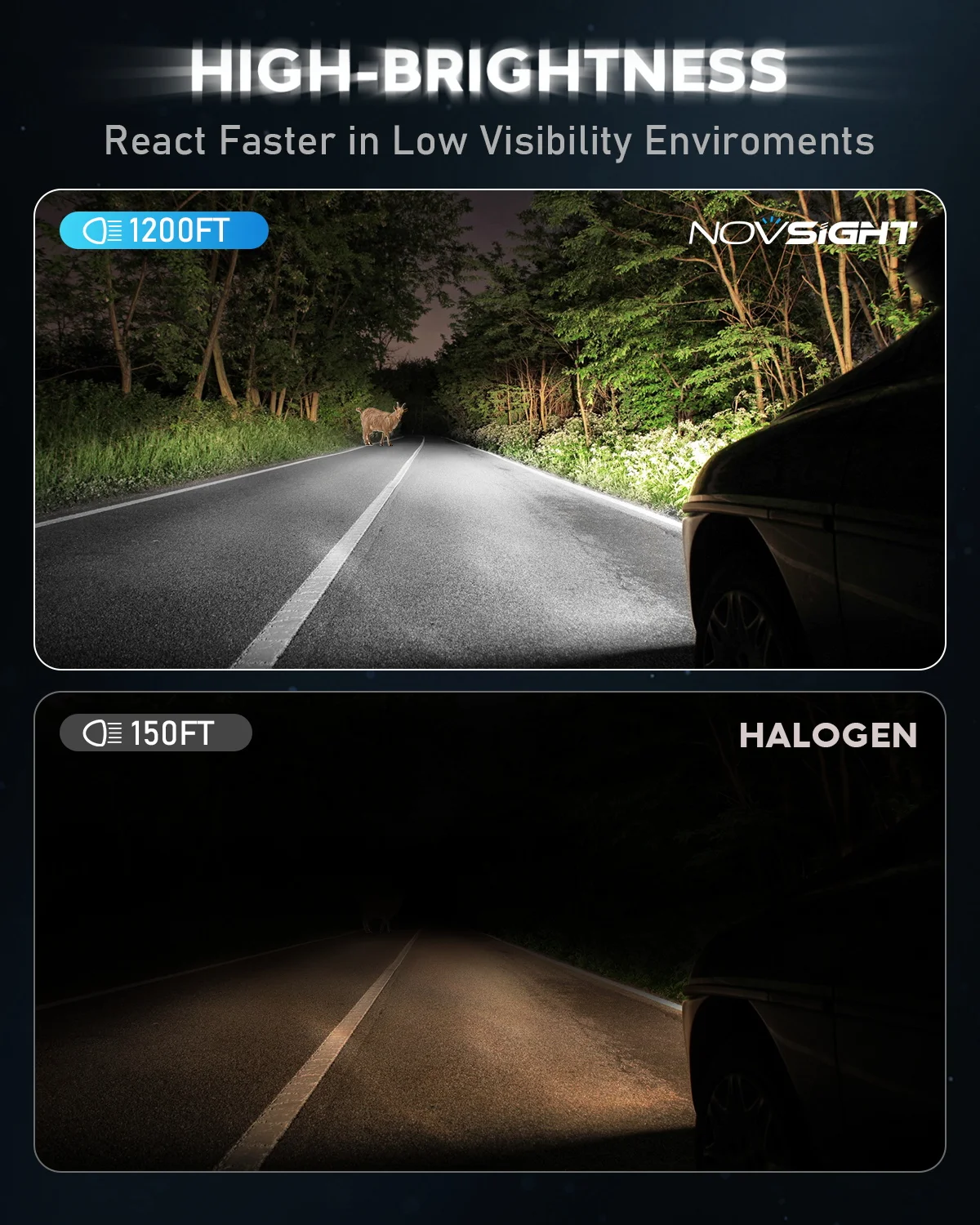 NOVSIGHT H11 9005 LED Headlight Bulbs 1:1 Size Light Mini Headlamp 90W 20000LM Fan 6500K White 12V High and Low Beam Car Lights