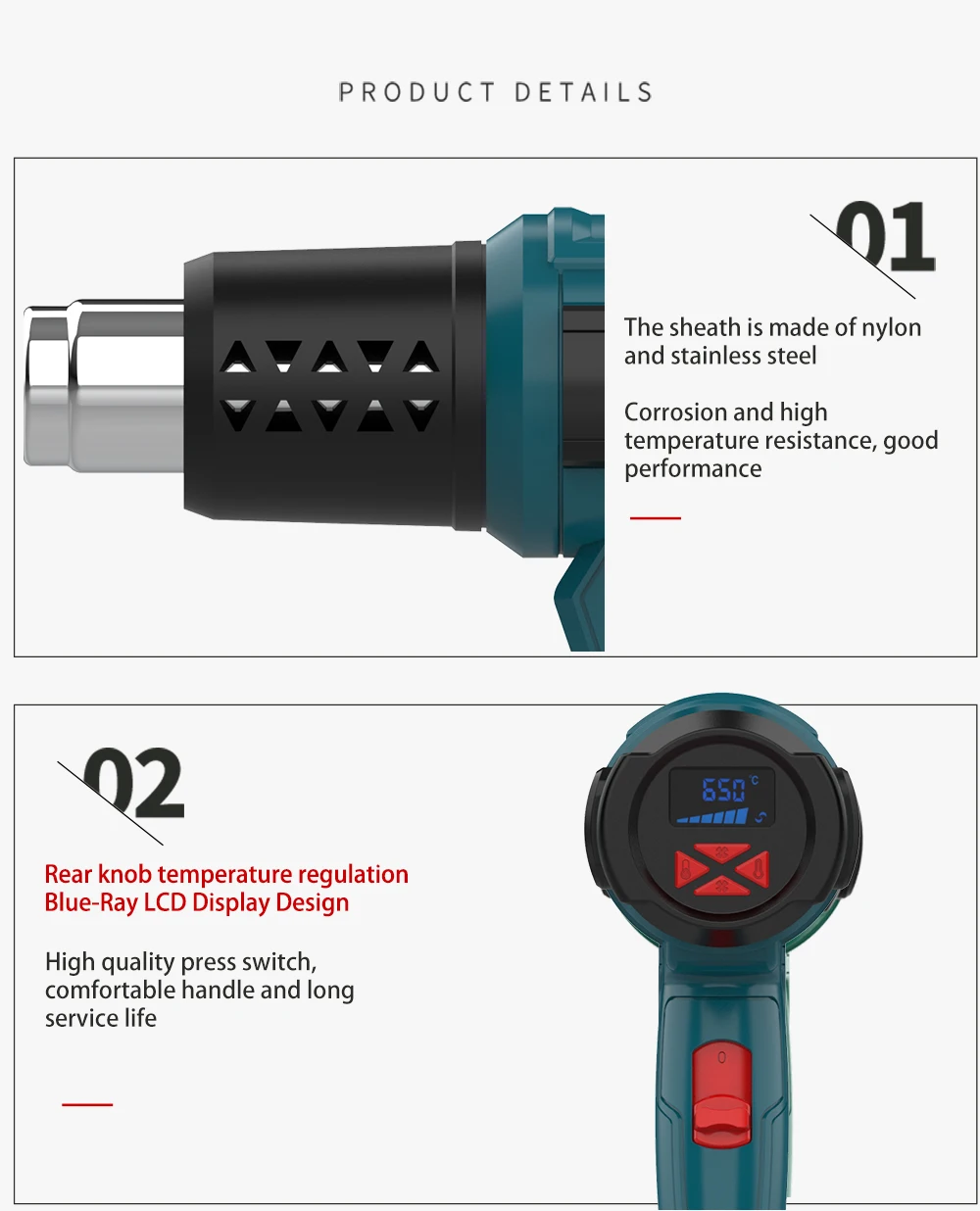 Best Seller Heat Gun With Carry BOX Protective Cover hot air gun LCD Display Thermal blower Temperature/wind speed adjustable