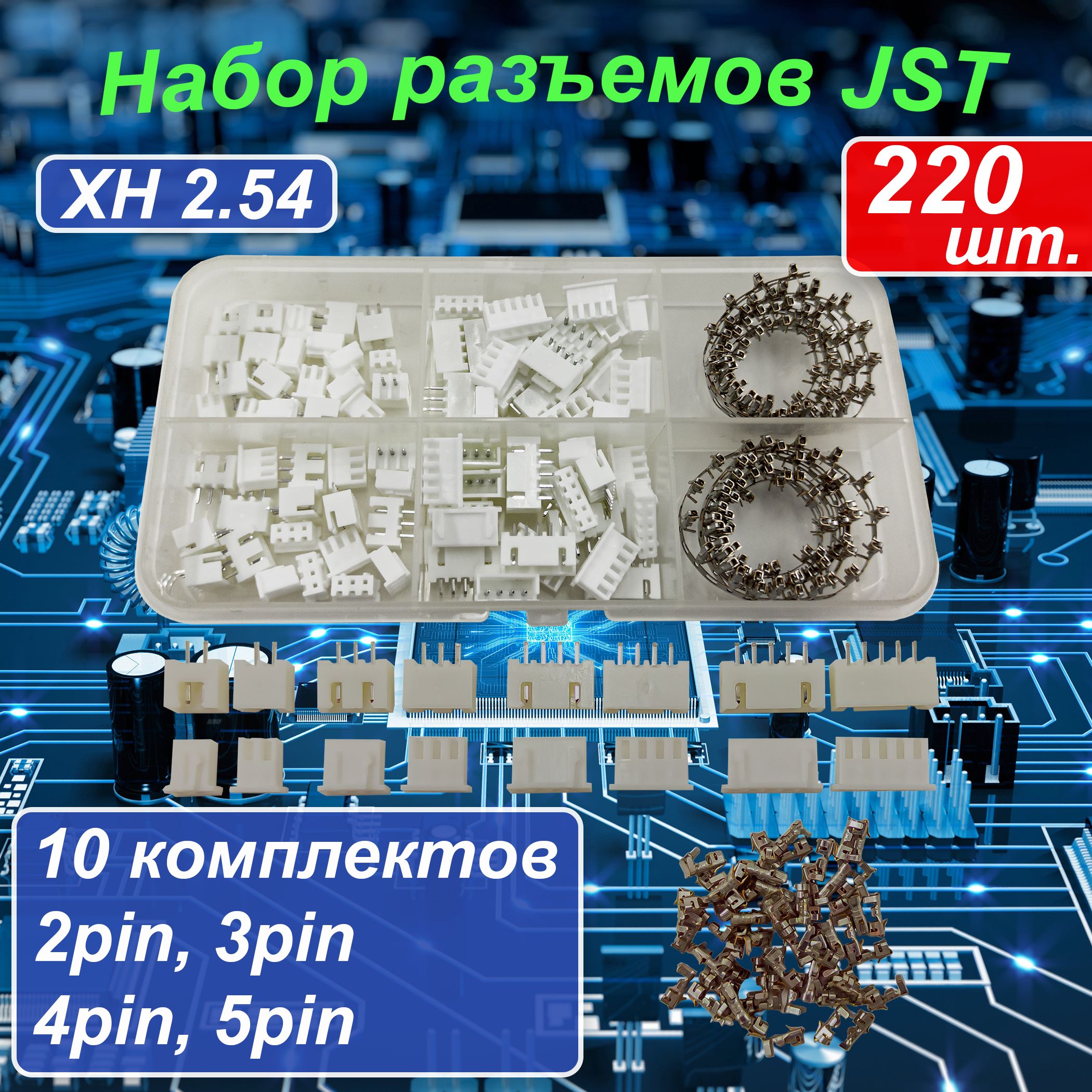 Набор разъемов JST XH2.54мм 2p/3p/4p/5p пин по 10 комплектов 220шт. купить в интернет-магазине OZON по низким ценам! Бесплатная доставка🚚 ✔Фото ✔Скидки ✔Рассрочка и настоящие отзывы (1404835822)