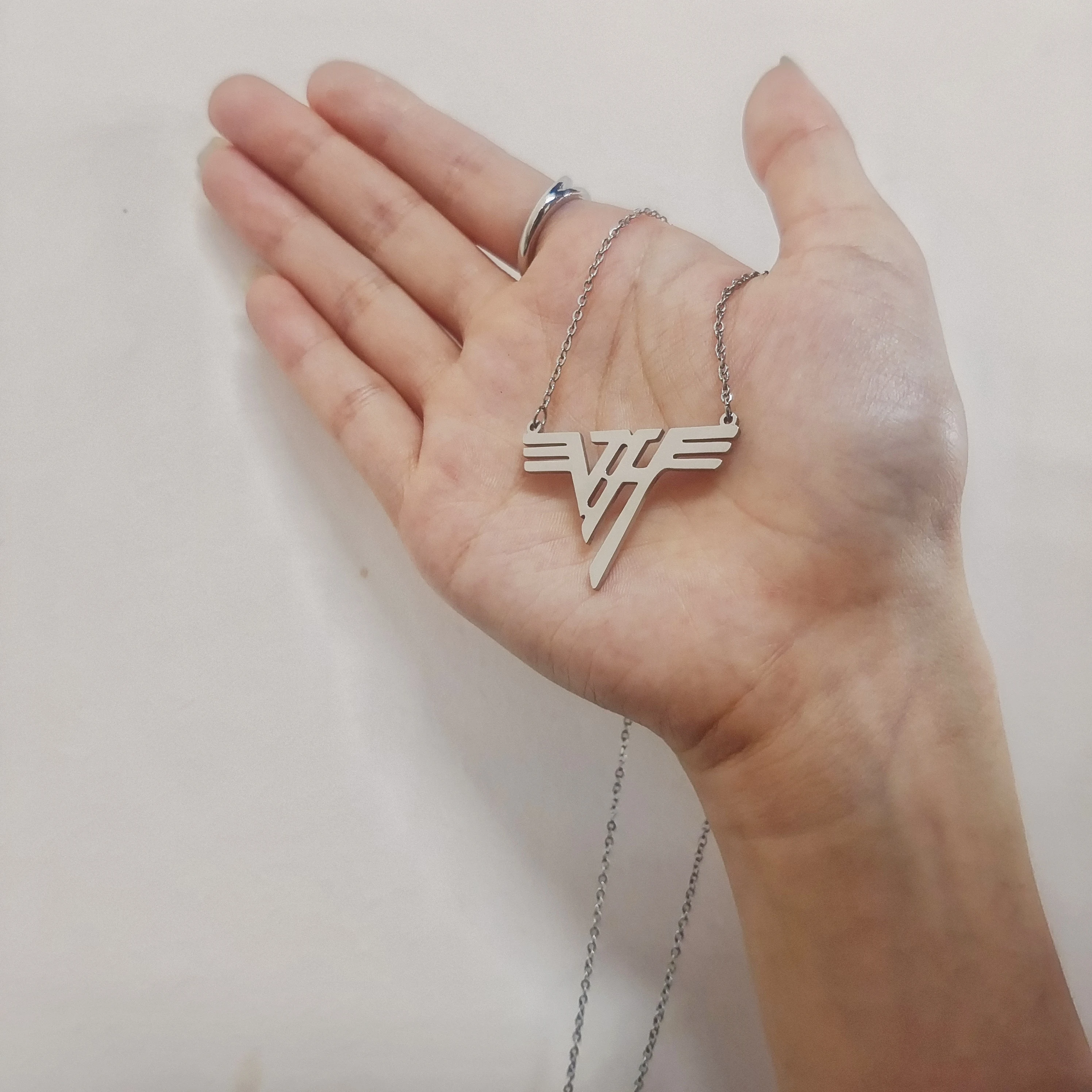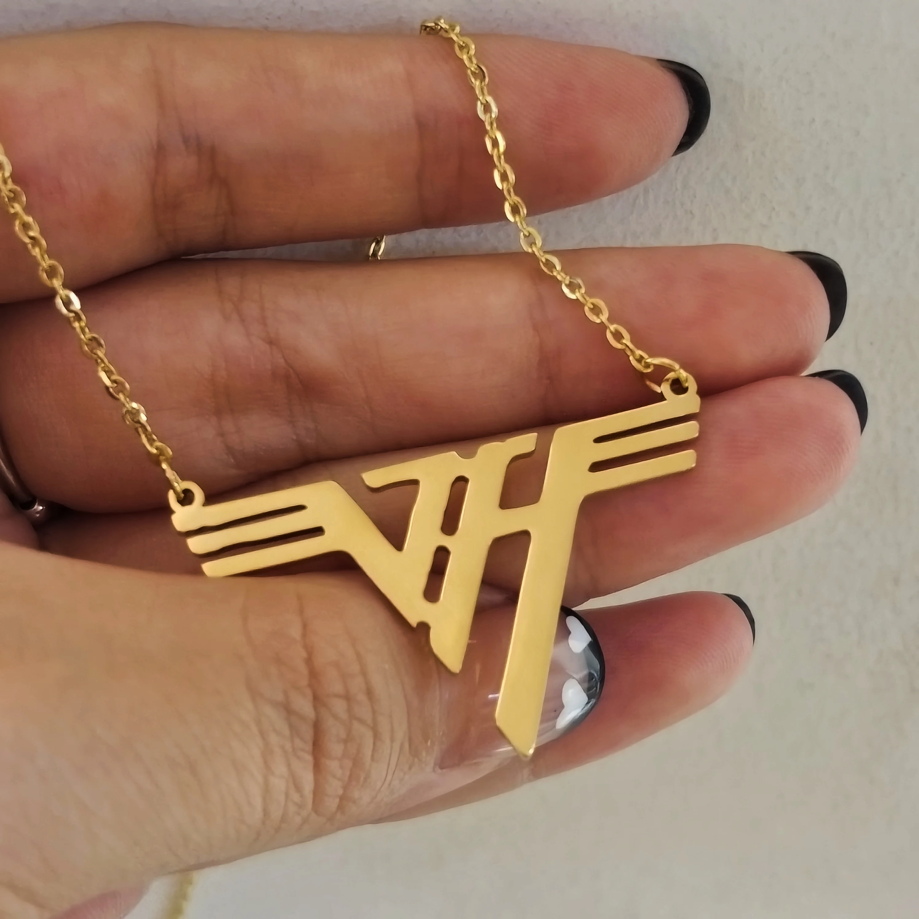 VH Charm Eddie 18K Gold Plated Stainless Steel Pendant Van Halen Logo Mena Necklace 1980 Classic EVH Rock Bnd Gift for Women - AliExpress