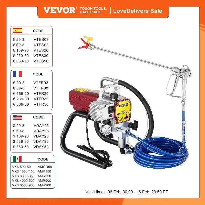 VEVOR High Pressure Airless Wall Paint Sprayer Spraying Machine Professional Spray Gun 2.2 L/Min for Ceiling Floor Wall Spraying