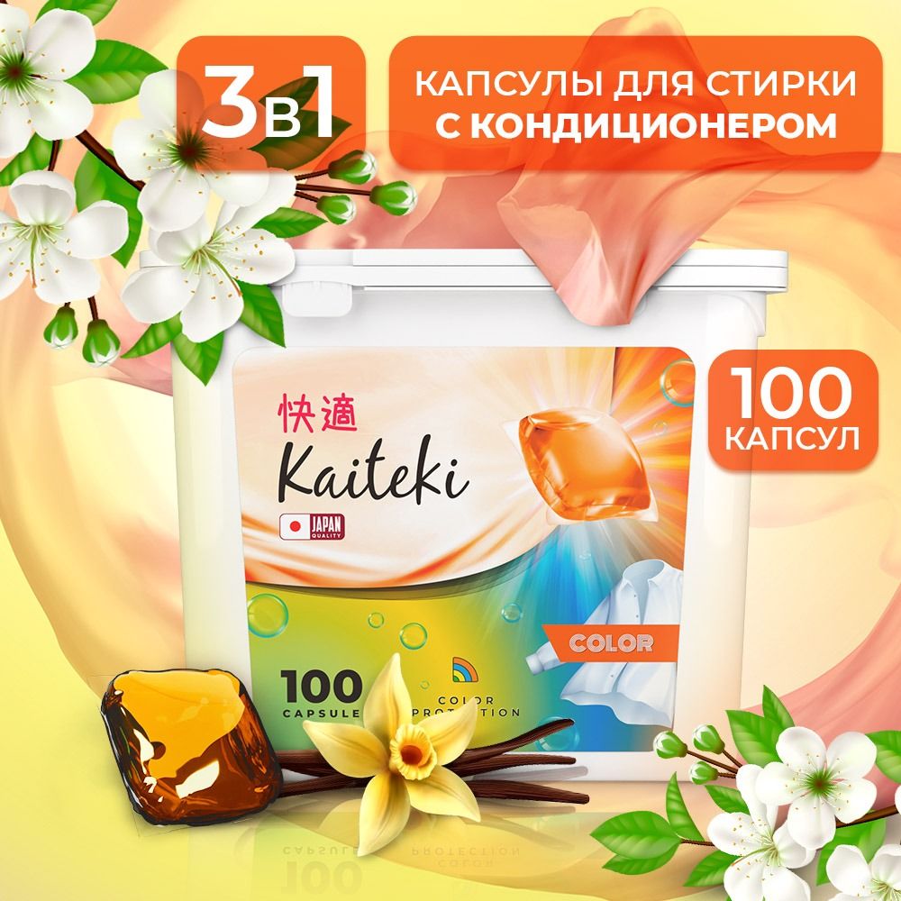 Капсулы для стирки 3в1 Kaiteki "Color" с кондиционером, Жасмин Ваниль, 100 шт купить в интернет-магазине OZON по низким ценам! Бесплатная доставка🚚 ✔Фото ✔Скидки ✔Рассрочка и настоящие отзывы (1211028791)