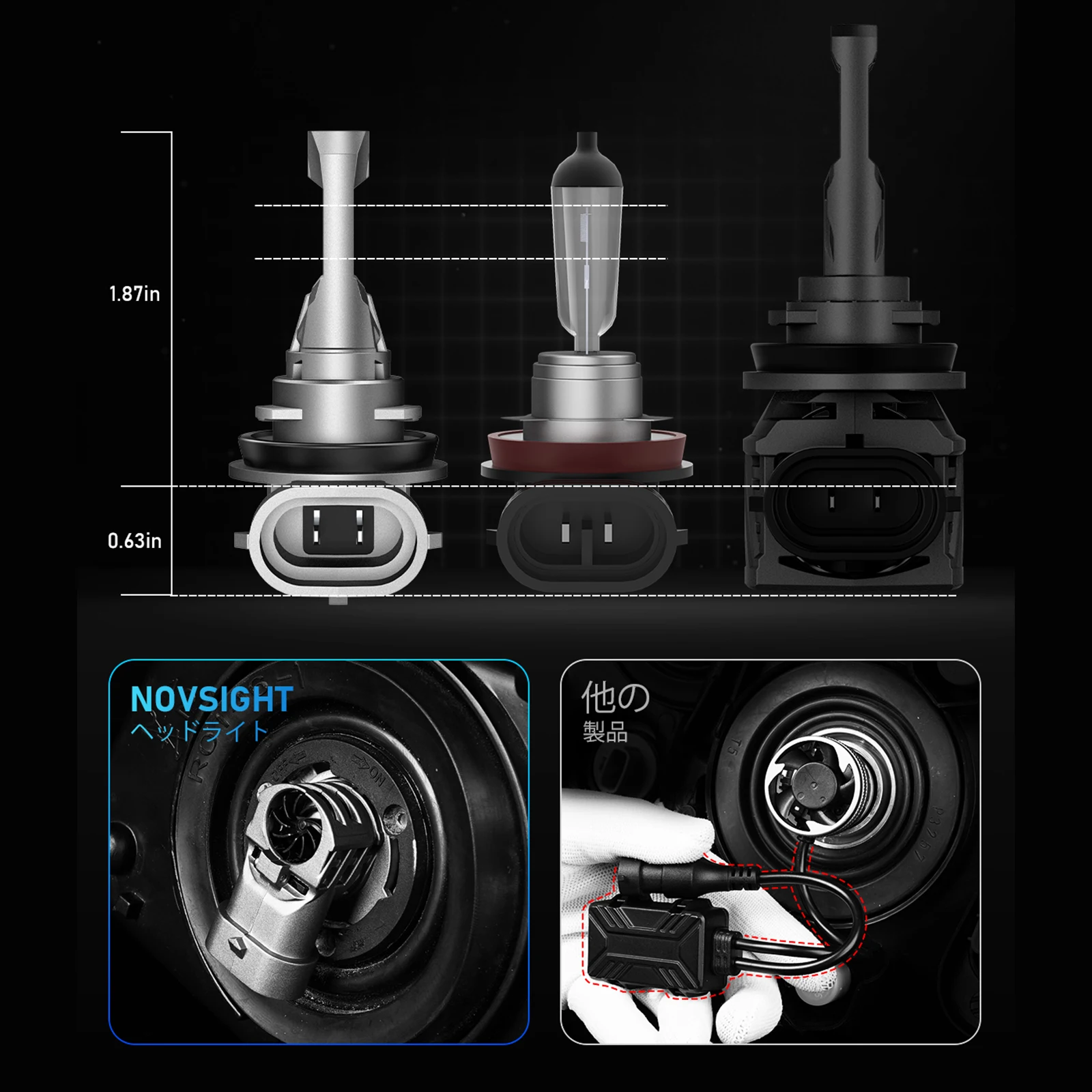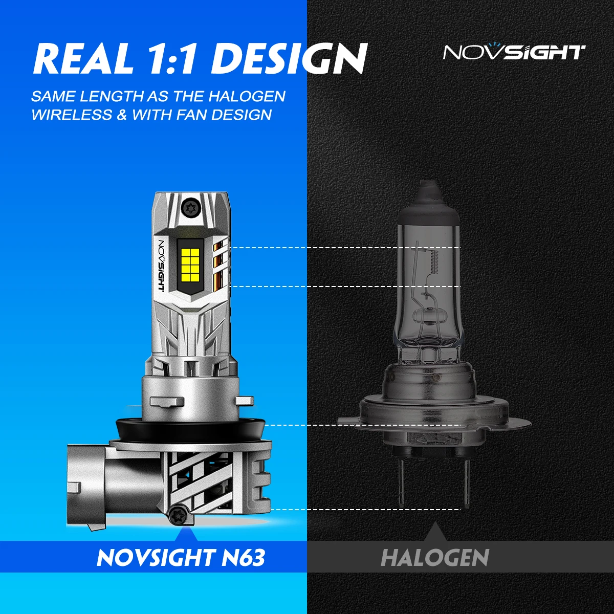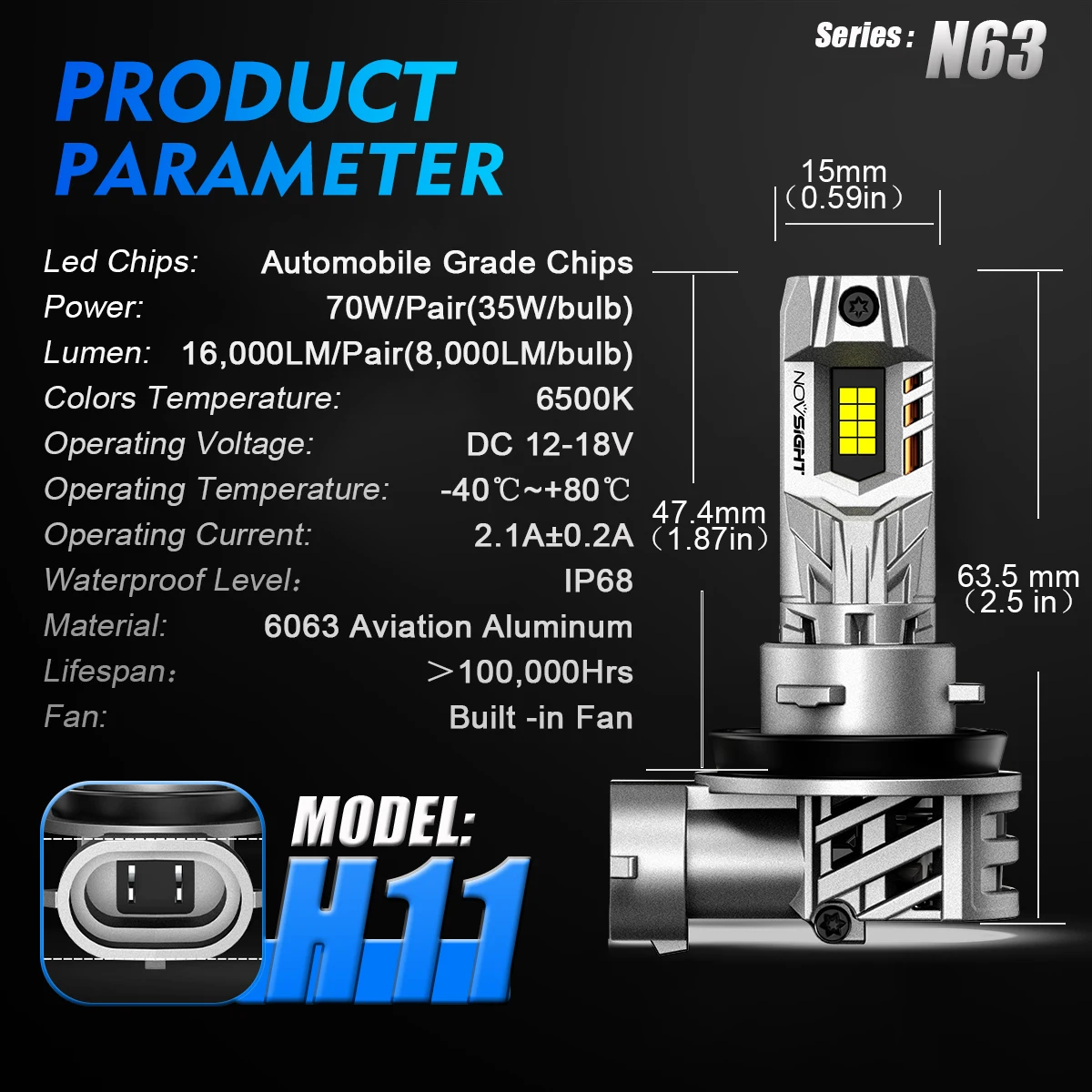 NOVSIGHT Car H11 h11 Светодиодный лампы для передних фар, лампы для передних фар дневного освещения, освещение 70 Вт, 6500 лм, 7535 K, легкая установка, без адаптера, чип Mini1:1
