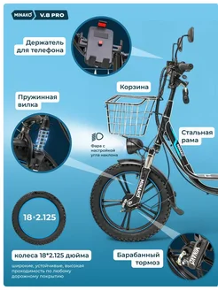 Электровелосипед Minako V8 Pro 60V/12Ah 500W MINAKO 247840445 купить за 49 124 ₽ в интернет-магазине Wildberries