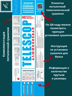 Сушилка для белья потолочная 180 см на 5 прутьев VIKATE 197333196 купить за 2 975 ₽ в интернет‑магазине Wildberries