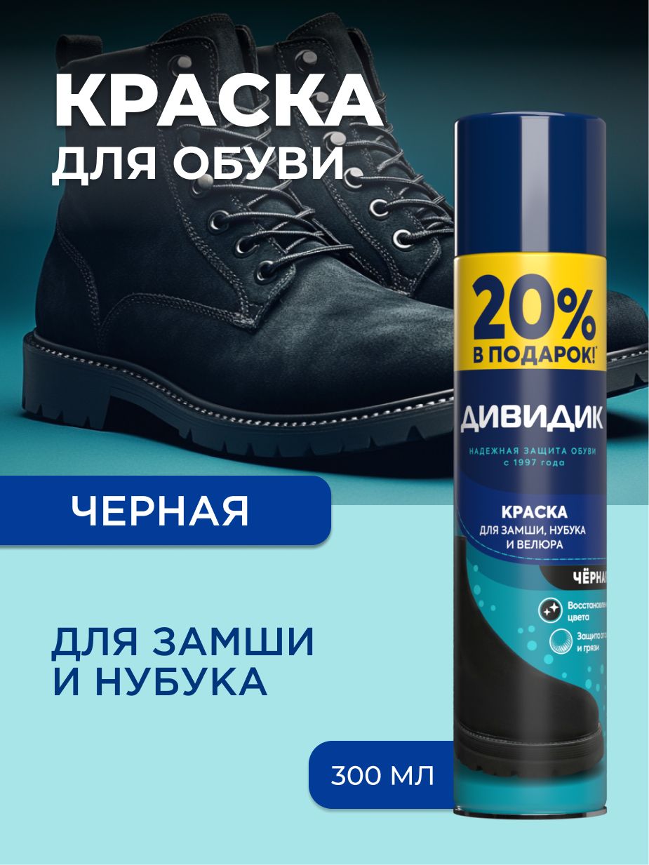 Краска для обуви черная спрей для замши Дивидик 300 мл – покупайте на OZON по выгодным ценам! Быстрая и бесплатная доставка, большой ассортимент, бонусы, рассрочка и кэшбэк. Распродажи, скидки и акции. Реальные отзывы покупателей. (148358602)
