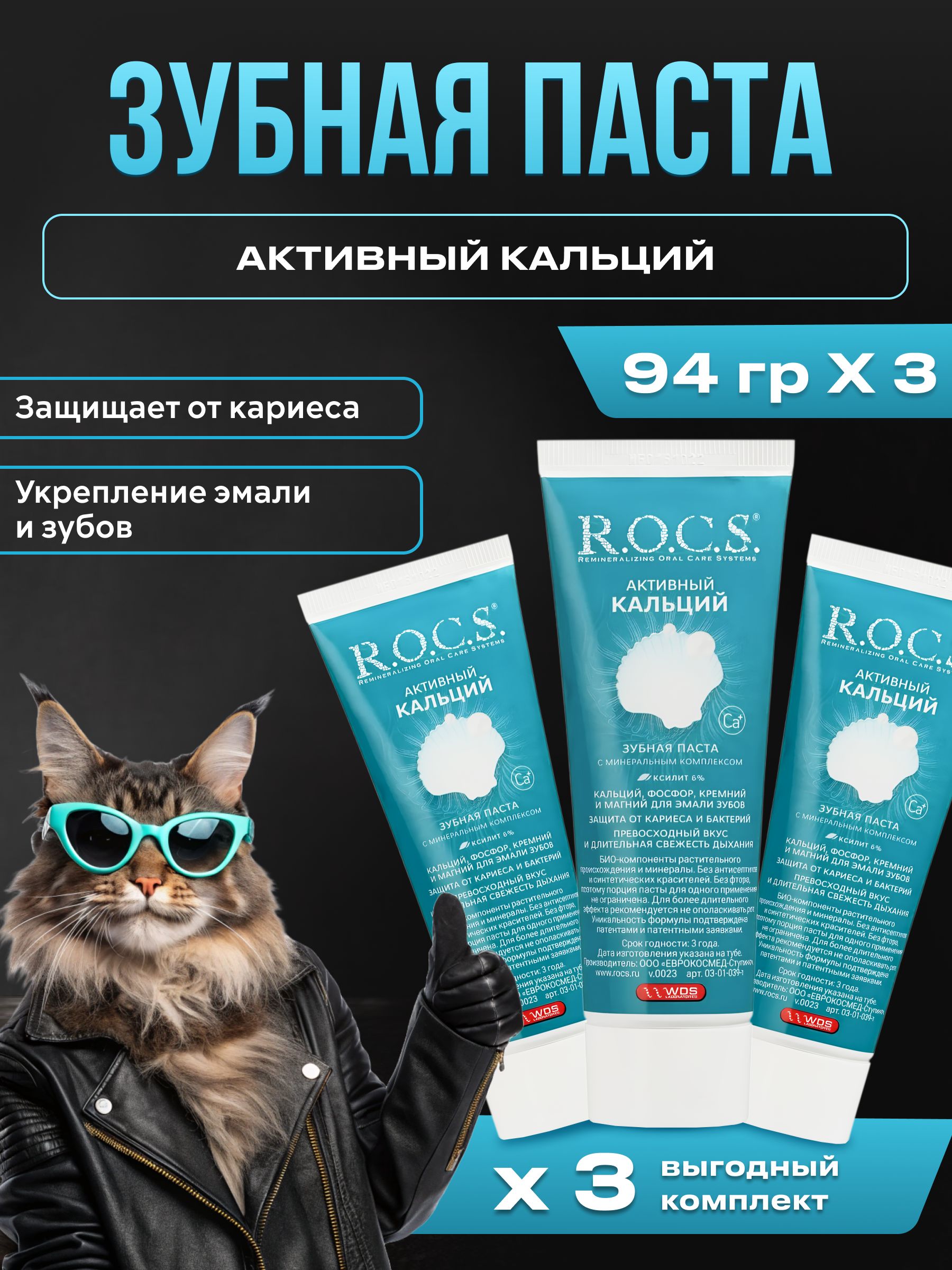 R.O.C.S. Зубная паста РОКС Активный Кальций, 3 шт по 94 гр – покупайте на OZON по выгодным ценам! Быстрая и бесплатная доставка, большой ассортимент, бонусы, рассрочка и кэшбэк. Распродажи, скидки и акции. Реальные отзывы покупателей. (1428499683)