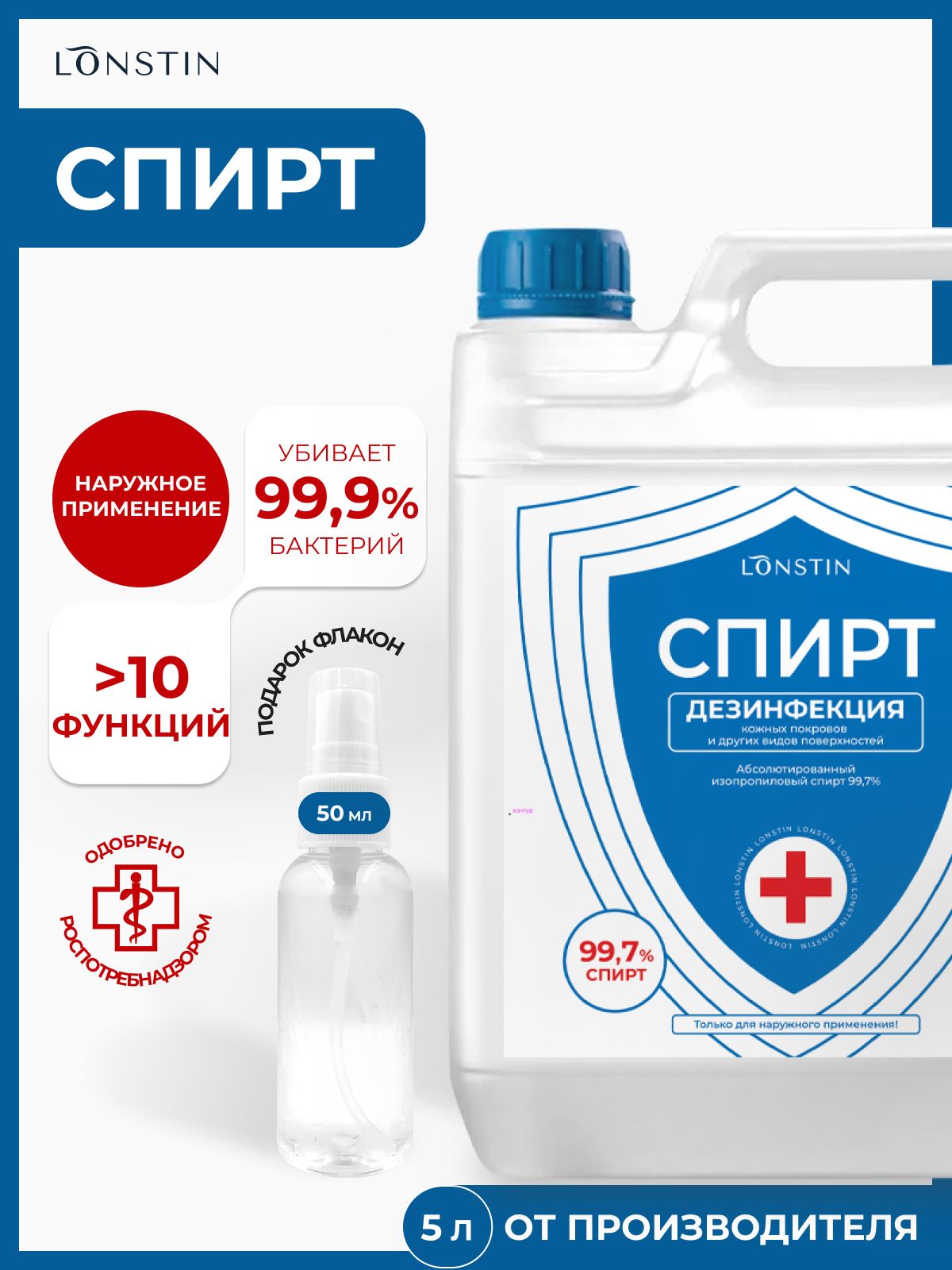 Спирт изопропиловый 75% объем 5л Lonstin 222760419 купить за 1 201 ₽ в интернет‑магазине Wildberries