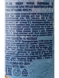 Соль морская помол №0, 500г x 1 шт METRO Chef 386388097 купить за 394 ₽ в интернет‑магазине Wildberries