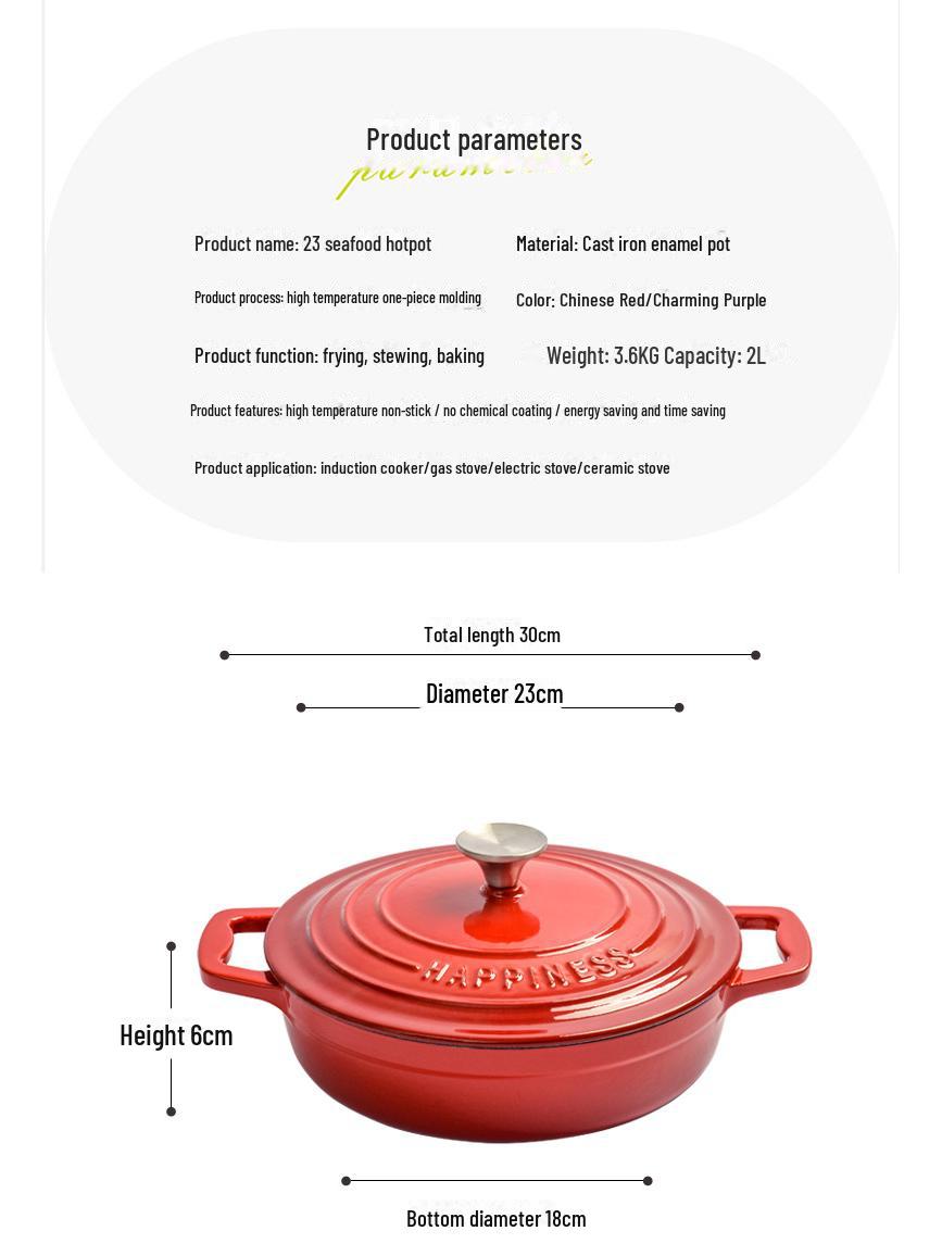 LittleHappinessМногофункциональнаячугуннаяэмалированнаякастрюлядлярагу,морепродуктовисупа—совместимасиндукцией