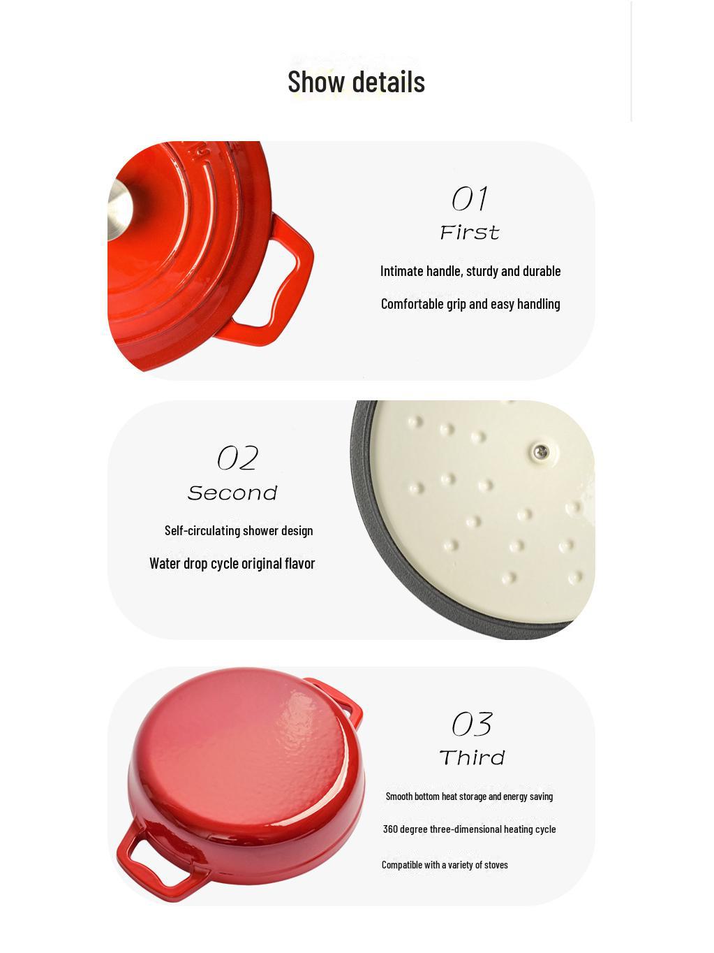 Огромный выбор Little Happiness Многофункциональная чугунная эмалированная кастрюля для рагу, морепродуктов и супа — совместима с индукцией по отличным ценам — только на Joom