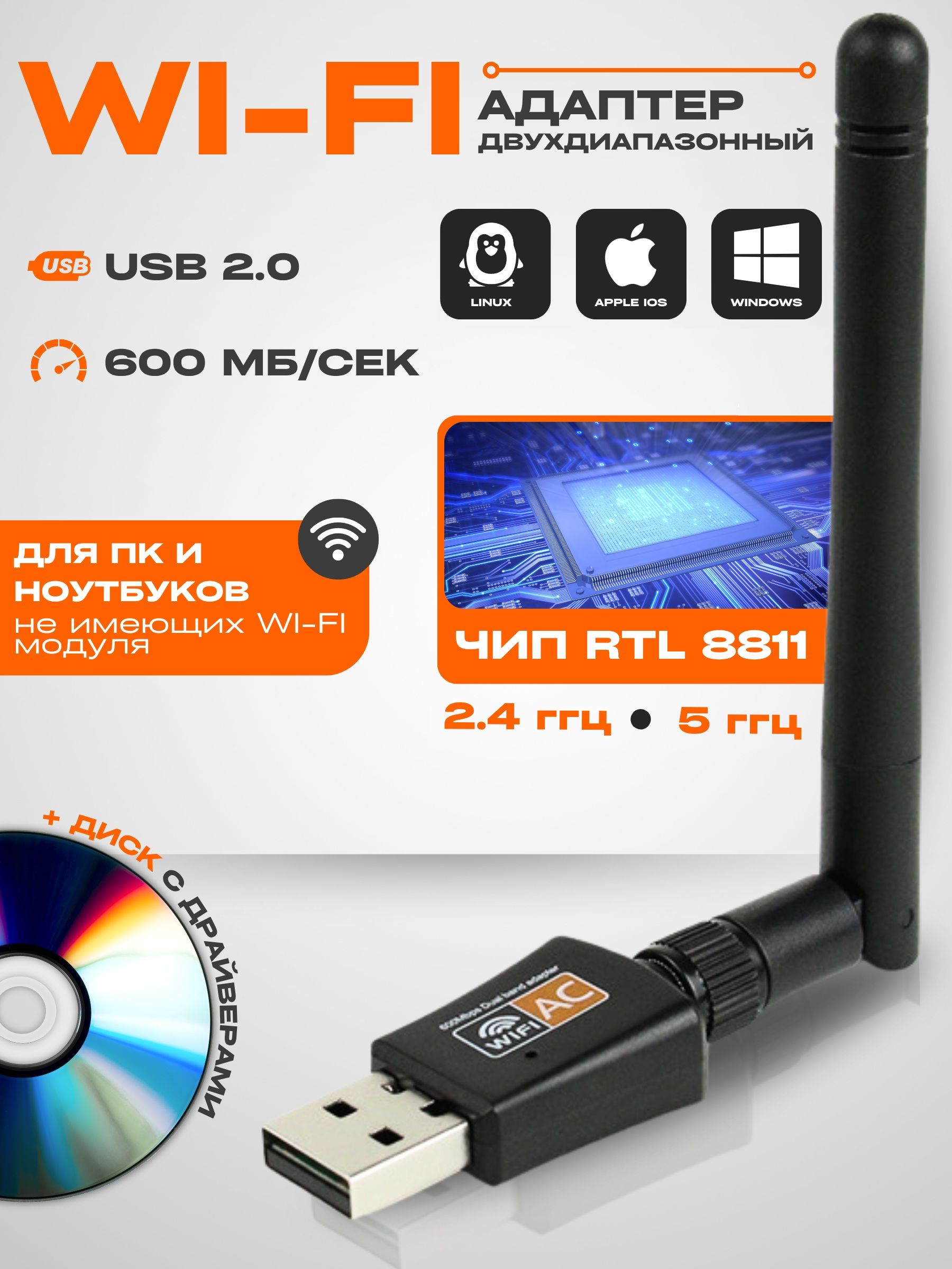 Wifi адаптер для компьютера 5 ГГц / 2.4 ГГц; Usb wifi адаптер , двухдиапазонный, с антенной, 600Мбит/c – покупайте на OZON по выгодным ценам! Быстрая и бесплатная доставка, большой ассортимент, бонусы, рассрочка и кэшбэк. Распродажи, скидки и акции. Реальные отзывы покупателей. (2566154301)