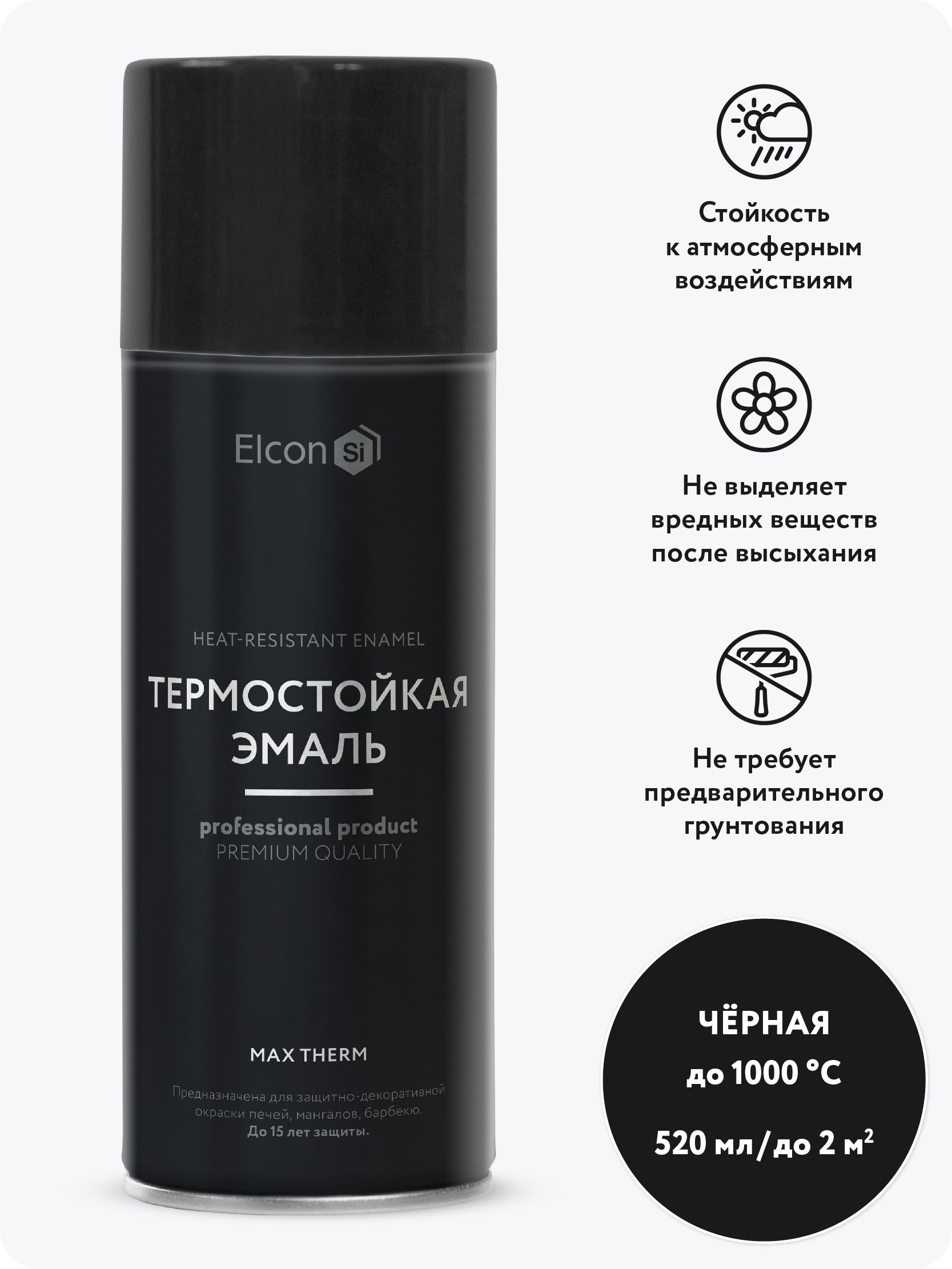 Аэрозольная краска Elcon Max Therm термостойкая до 1000 градусов антикоррозионная для печей мангалов радиаторов матовое покрытие, аэрозоль 520 мл, черная – покупайте на OZON по выгодным ценам! Быстрая и бесплатная доставка, большой ассортимент, бонусы, рассрочка и кэшбэк. Распродажи, скидки и акции. Реальные отзывы покупателей. (200084058)
