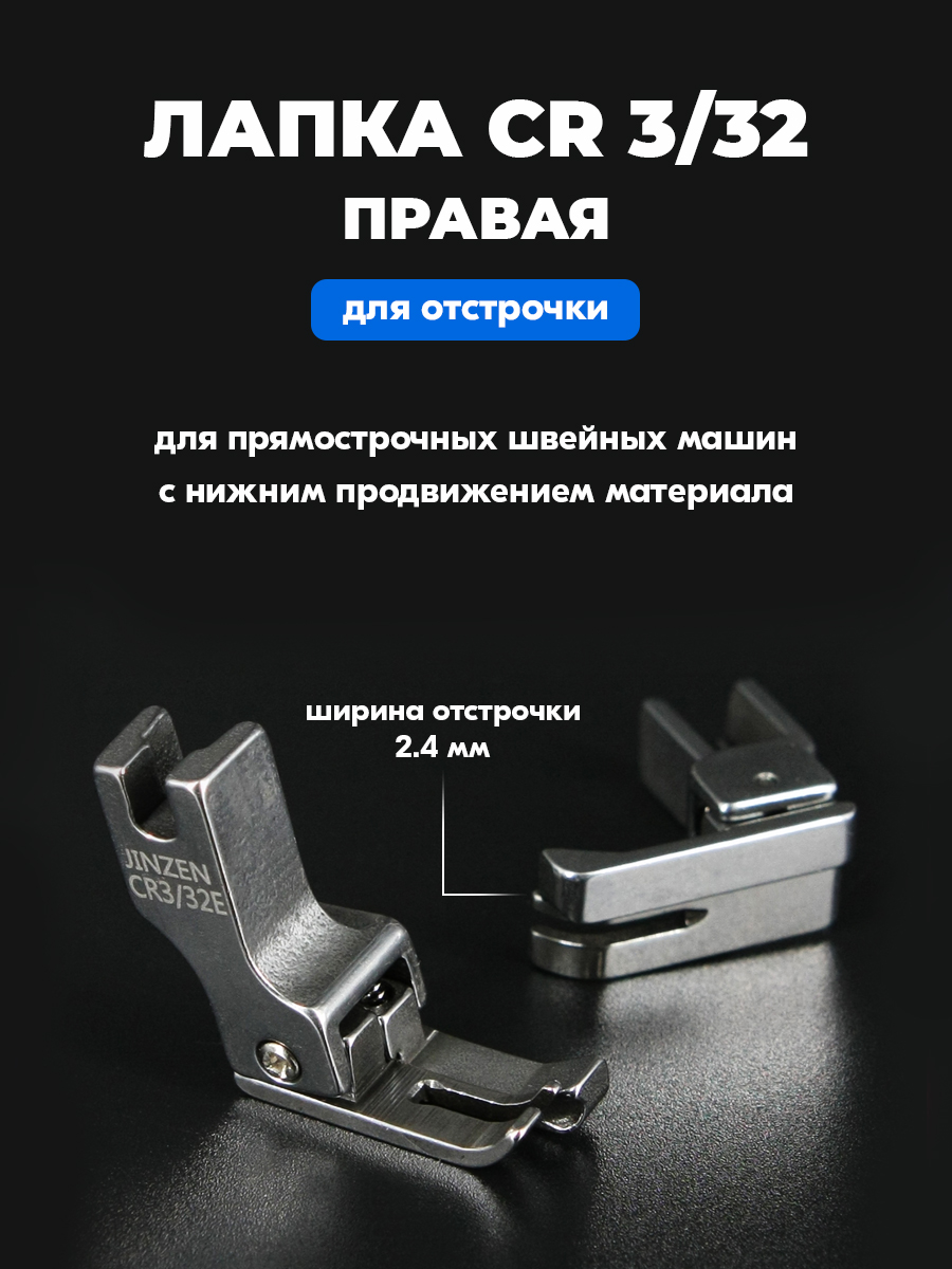Лапка для отстрочки CR 3/32" (2.4 мм) правая для промышленной швейной машины – покупайте на OZON по выгодным ценам! Быстрая и бесплатная доставка, большой ассортимент, бонусы, рассрочка и кэшбэк. Распродажи, скидки и акции. Реальные отзывы покупателей. (1051379166)