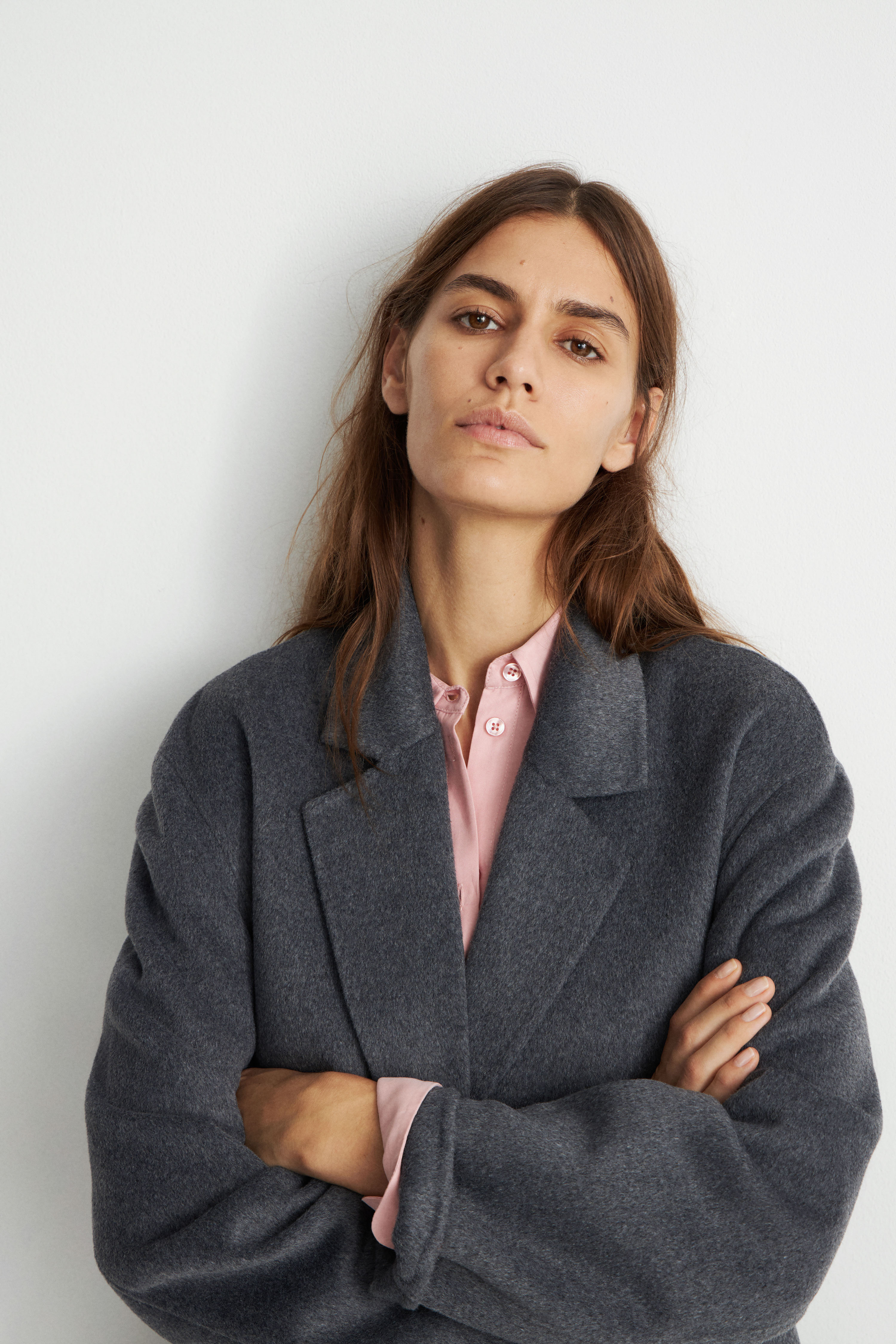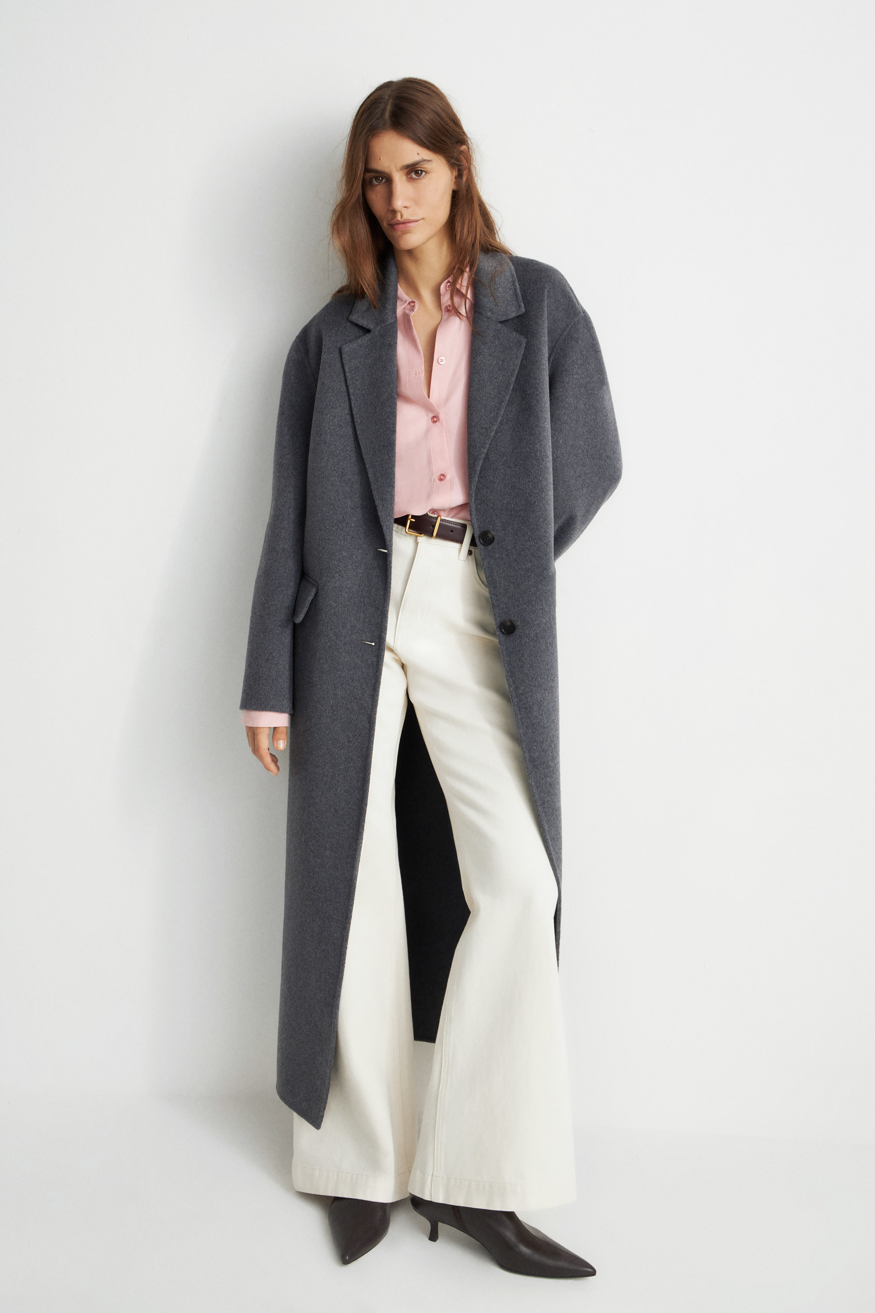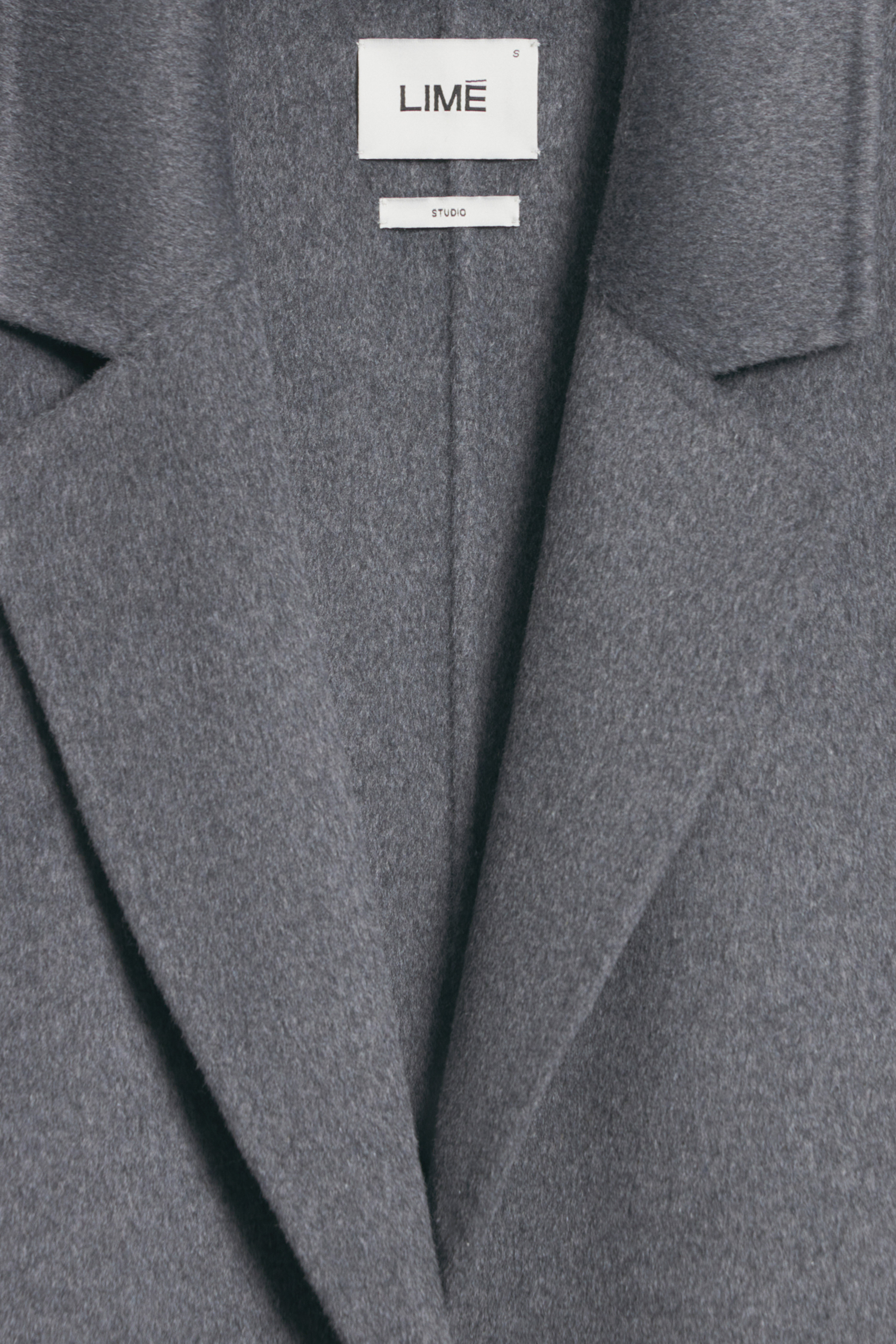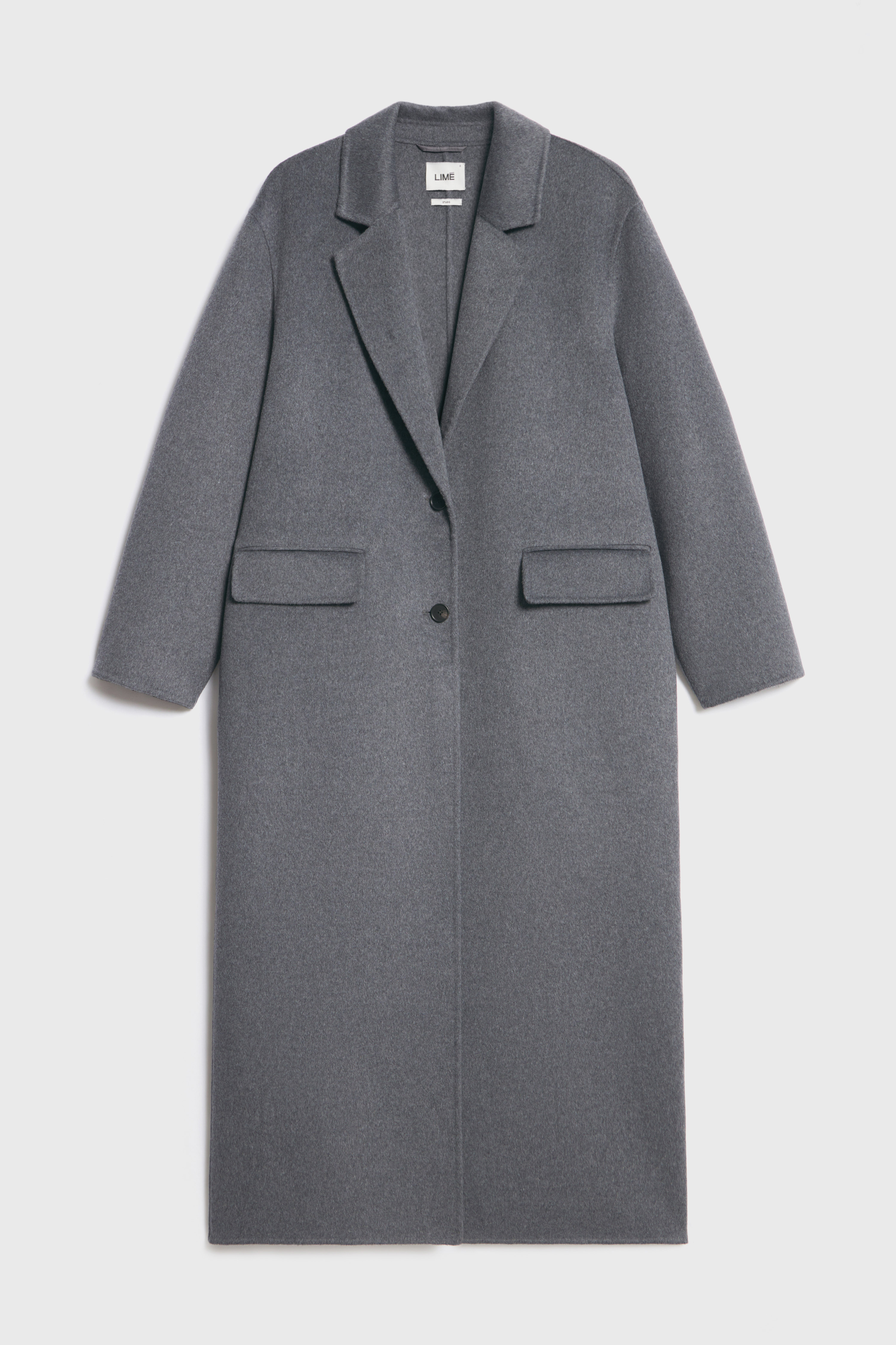 Шерстяное пальто ручной работы LIMÉ Однотонное пальто свободного кроя оверсайз из двусторонней ткани на основе шерсти. Однобортный дизайн с лацканами, длинными рукавами и карманами с клапанами. Частично подшитая подкладкой модель застегивается на пуговицы. Ручная работа..