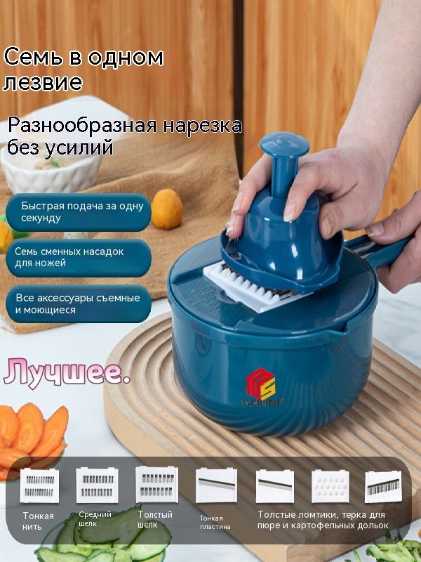 многофункциональнаяовощерезка,теркадляовощей,снасадкамииконтейнером,Синий