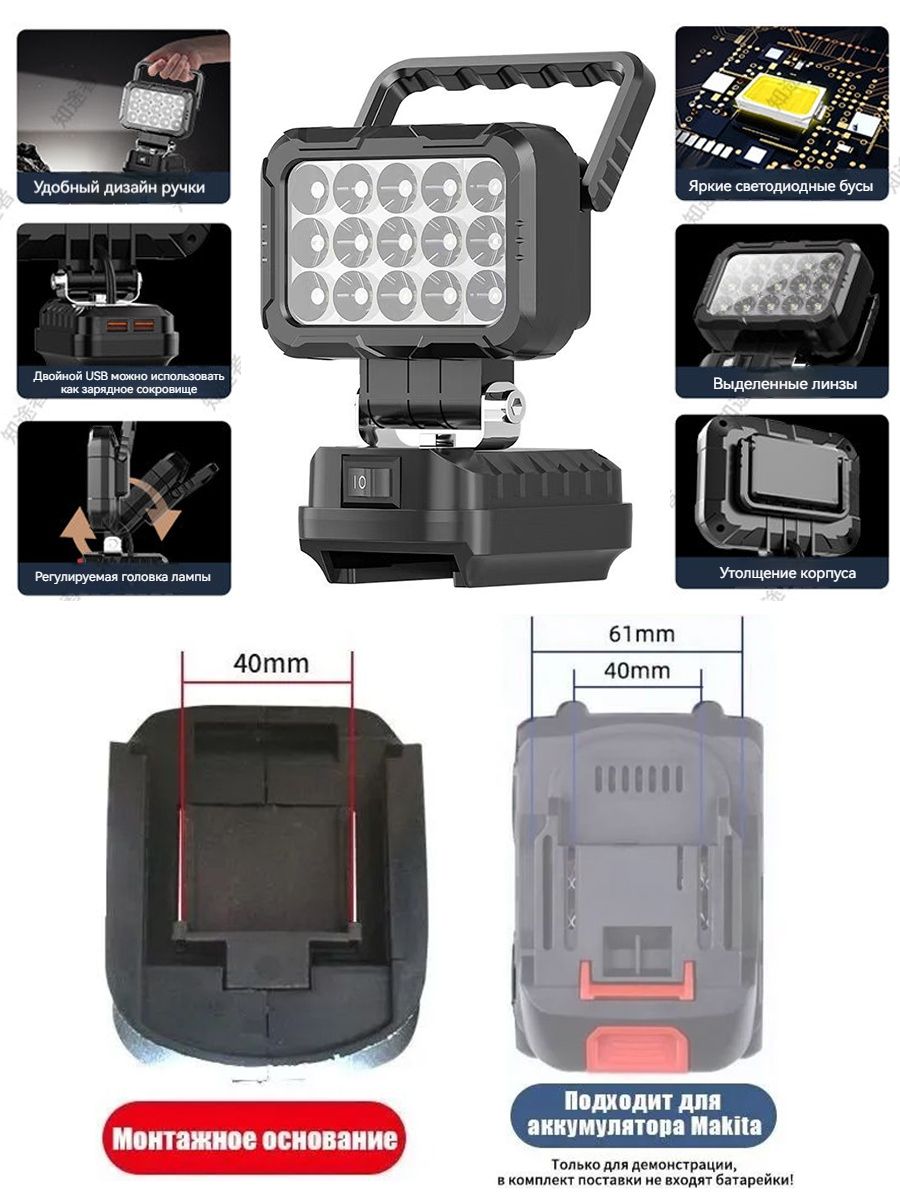 фонарь под аккумулятор makita, 2 порта USB для зарядки Kersenis 447580338 купить за 843 ₽ в интернет‑магазине Wildberries