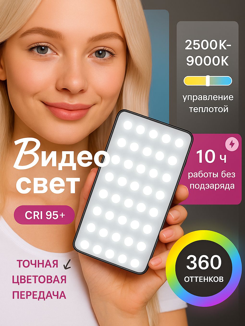 ОсветительсветодиодныйRGBдляфотовидеосъемкивидеосветпрофессиональныйсаккумулятором