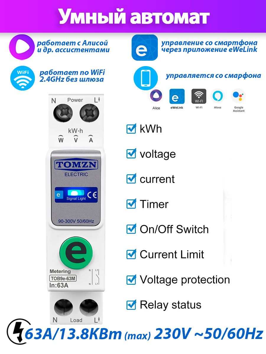 Умное Wi-Fi реле TOMZN TOB9e-63M на DIN рейку. Счётчик электроэнергии, таймер, ограничение по току и напряжению. Управление через умный дом eWeLink. Работает с Алисой – покупайте на OZON по выгодным ценам! Быстрая и бесплатная доставка, большой ассортимент, бонусы, рассрочка и кэшбэк. Распродажи, скидки и акции. Реальные отзывы покупателей. (1430200444)