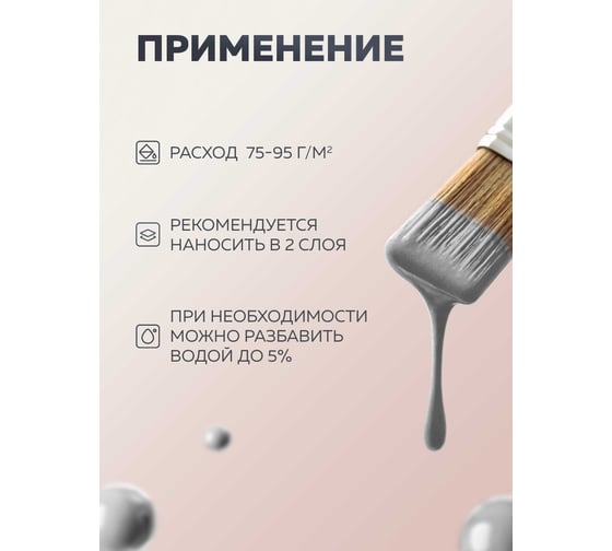 Предназначенадляокраскидеревянныхибетонныхполов,защитно-декоративнойобработкидверей,мебелииизделийиздревесины.Эмальпослевысыханияобразуетровную,полуматовую,устойчивуюкистираниюповерхность.Особенностьюпокрытияявляетсяводостойкостьиустойчивостькистиранию(1класс-менее5мкмпри200циклахистирания).Экологическичистая,безопасная.Водоразбавляемая.Неимеетрезкогозапахаиабсолютнонетоксична.Водоразбавляемая,легконаносится,сотличнойадгезиейкбольшинствуповерхностей.Высокаястойкостьидолговечность,безвыцветанияпленки.Паропроницаемостьсамойпленкидаетвозможностьбыстроисвоевременноиспарятьсявлагесдревеснойповерхности.Улучшенноекачествоэластичностиспособствуетровномунанесению.Наноситьначистую,сухуюповерхность.Отслаивающиесястарыепокрытиядолжныбытьудаленысповерхности.Возможнонанесениянастаруюмаслянуюилиглифталевуюкраскуспредварительнойзачисткойповерхностинаждачнойбумагой.Эмальнаноситсякистью,валикомиликраскопультом.Расходможетварьироваться,взависимостиотструктуры,типа,состоянияокрашиваемойповерхностиисоставляет75-95г/м²Времявысыханиядостепени3притемпературе+20°С–1час,приболеенизкихтемпературахвремявысыханияувеличивается.Полноевысыханиечерез24часа.Полныйнаборпрочностииустойчивостиквлажномумытьюдостигаетсячерез10дней.
