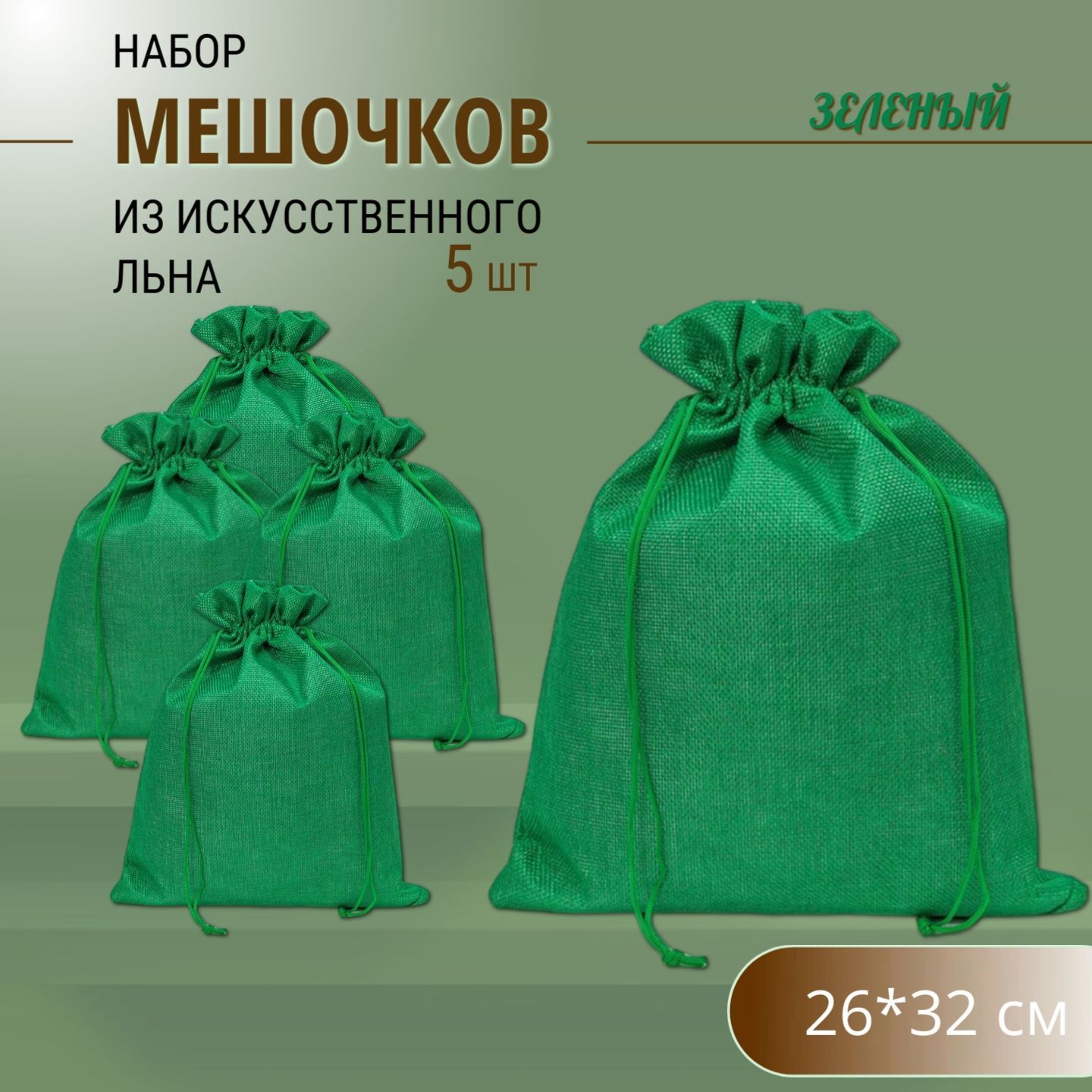 Подарочные мешочки льняные (иск.) 26х32 см (5 шт.) / мешочки для хранения - Зелёные – покупайте на OZON по выгодным ценам! Быстрая и бесплатная доставка, большой ассортимент, бонусы, рассрочка и кэшбэк. Распродажи, скидки и акции. Реальные отзывы покупателей. (1763225368)