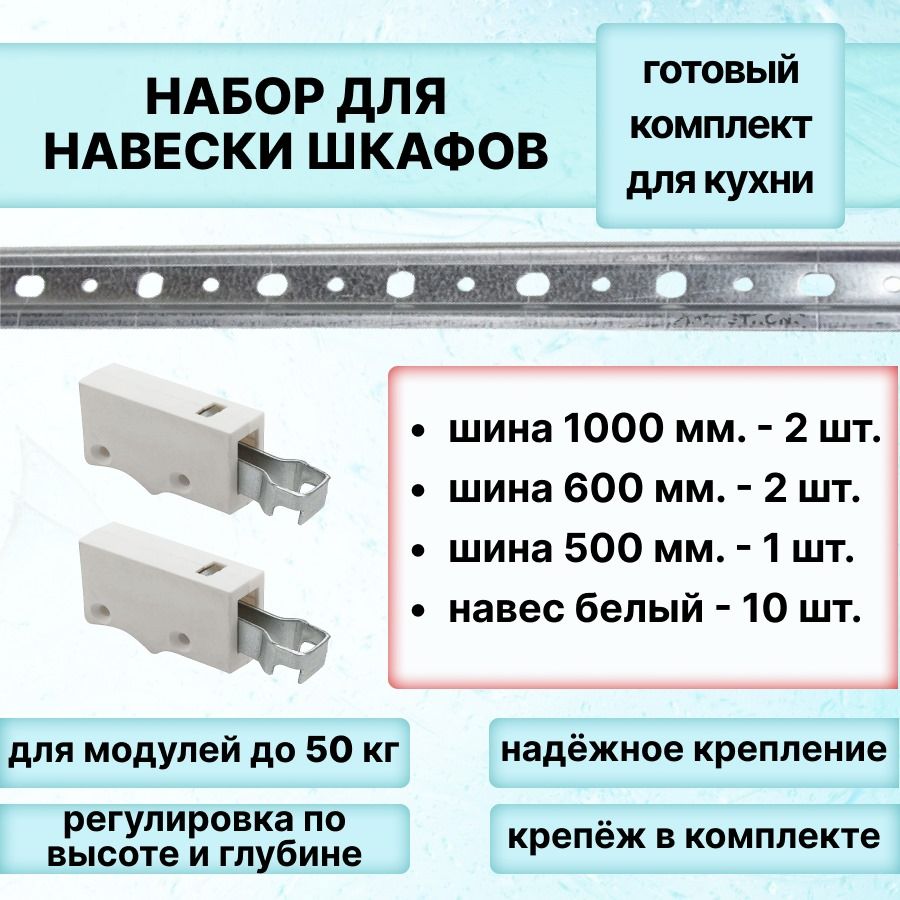 Набор шин для навески шкафов 1000мм- 2шт.,600мм-2шт.,500мм-1шт., навес-10шт – покупайте на OZON по выгодным ценам! Быстрая и бесплатная доставка, большой ассортимент, бонусы, рассрочка и кэшбэк. Распродажи, скидки и акции. Реальные отзывы покупателей. (1100994686)