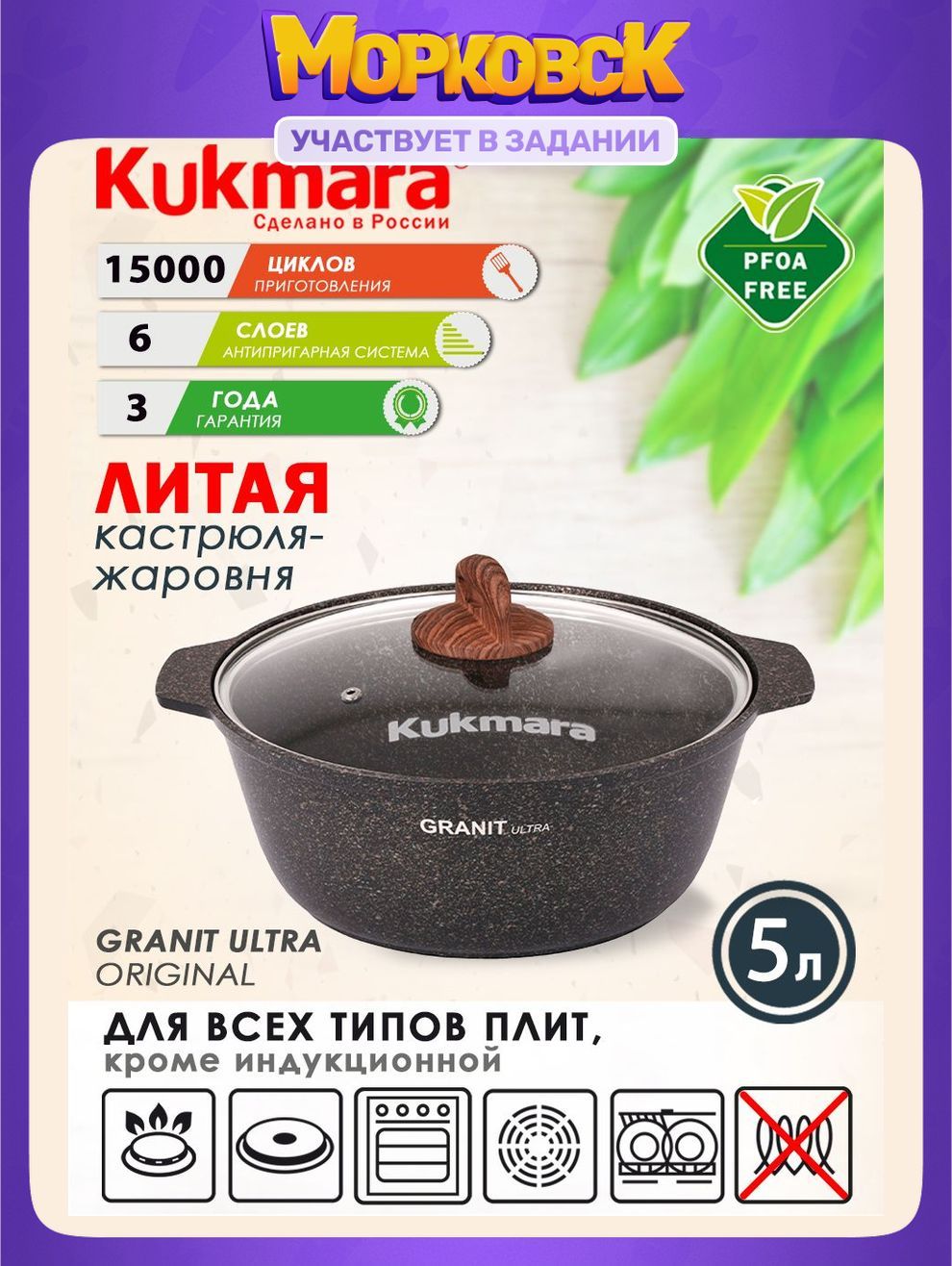 Kukmara Жаровня "Granit ultra original", Алюминий, 5 л, 28 см – покупайте на OZON по выгодным ценам! Быстрая и бесплатная доставка, большой ассортимент, бонусы, рассрочка и кэшбэк. Распродажи, скидки и акции. Реальные отзывы покупателей. (1608608329)
