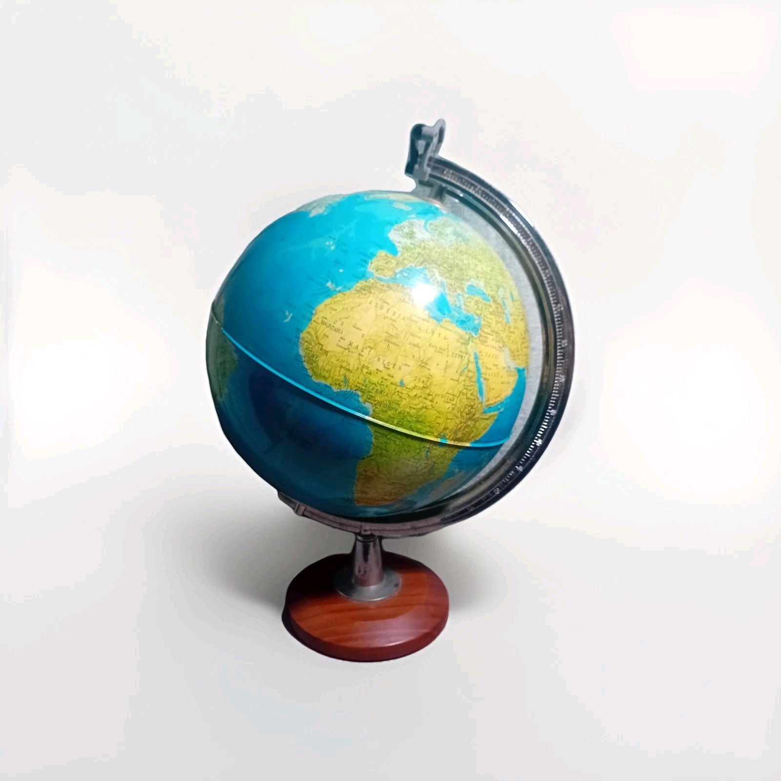 Technodidattica vintage illuminated world globe. Couple of chips to plastic on centre line (as seen on last 3 pics), other tgan that, in great condition for age.