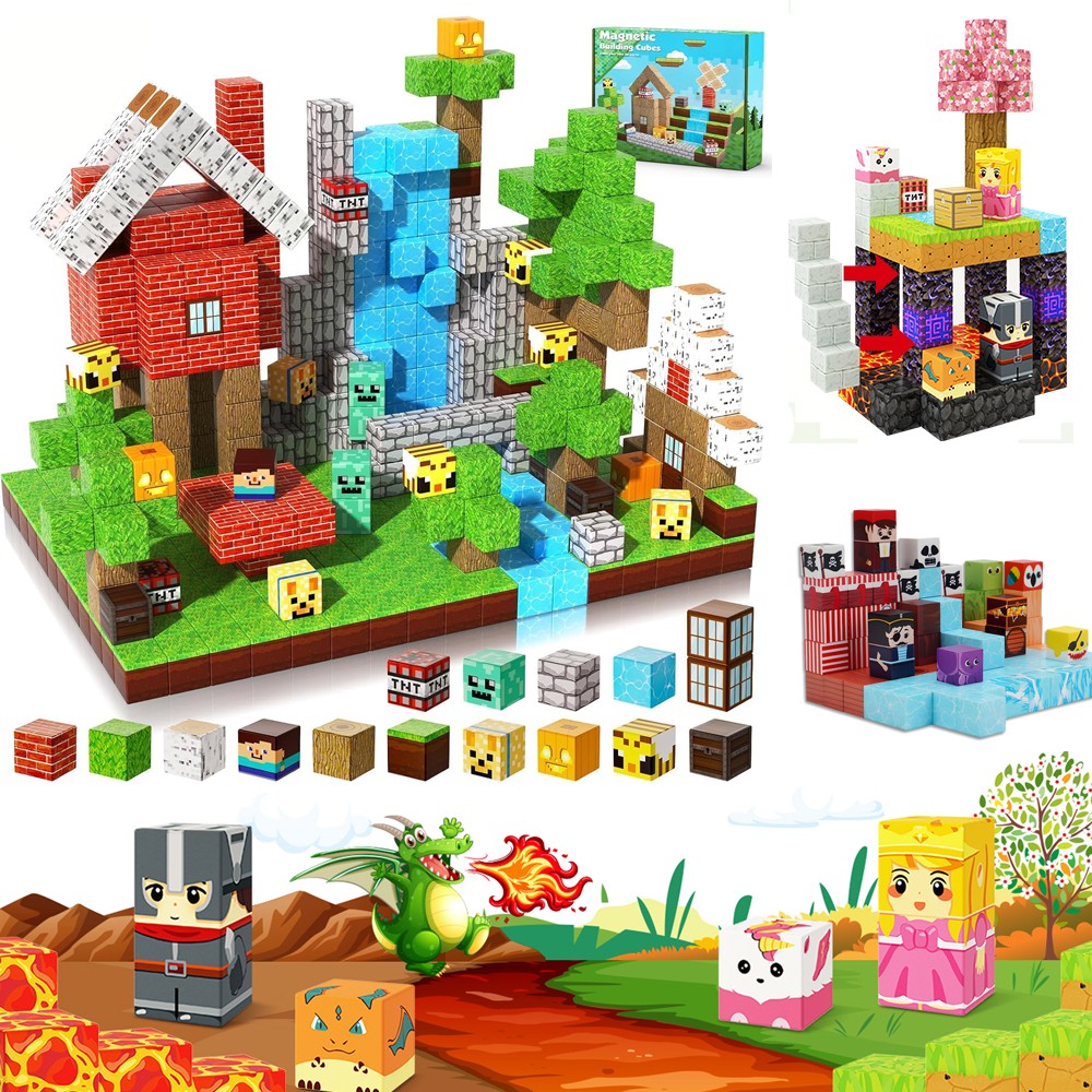 Features: -It provides a variety of patterns, including water, grass, wood, stone, leaves, bricks and windows, which children can use to build their own space. -With super strong internal magnets, it can stick the cubes together and make the structure more stable. -Proper size for small hands to grasp, and the round edges will not hurt the skin. -It can stimulate children's creative thinking, concentration, patience, cooperation, spatial and motor skills. -This is a great educational toy, a perfect gift for birthdays, Christmas, Children's Day and other festivals, a perfect educational tool for STEM and school activities. Specification: .