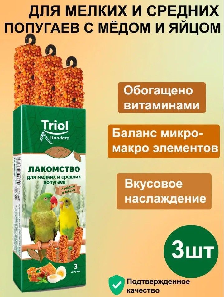 Лакомство для мелких и средних попугаев с мёдом и яйцом (уп. 3 шт), 80г, Triol Standard – покупайте на OZON по выгодным ценам! Быстрая и бесплатная доставка, большой ассортимент, бонусы, рассрочка и кэшбэк. Распродажи, скидки и акции. Реальные отзывы покупателей. (1746864229)